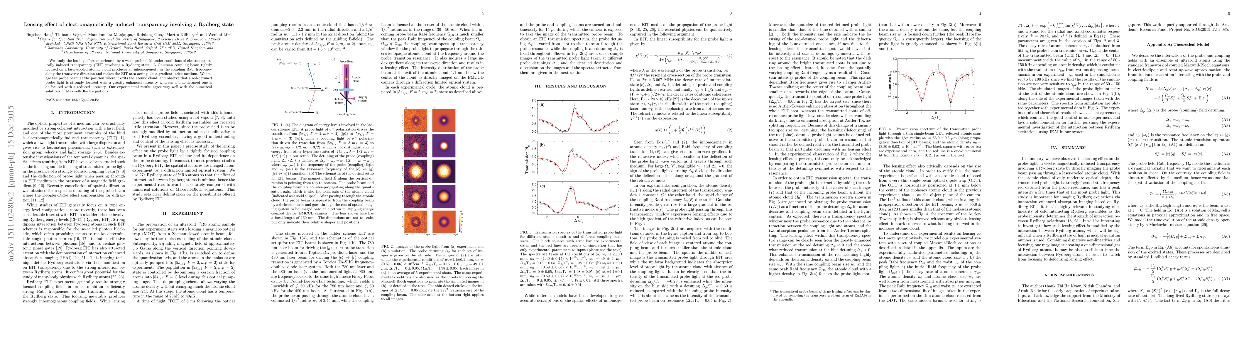Researchers studied how a weak probe beam interacts with an atomic cloud under electromagnetically induced transparency conditions, finding that red-detuned light is strongly focused while blue-detuned light is de-focused.