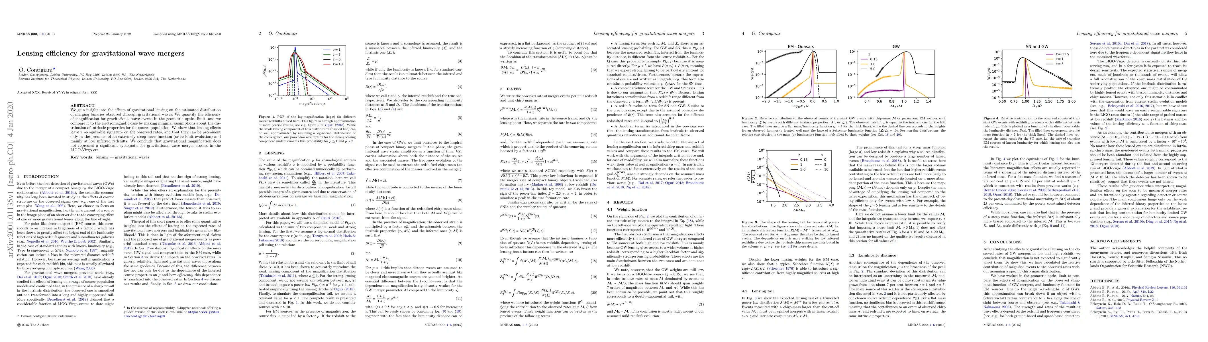 Gravitational lensing affects estimated merging binaries observed through gravitational waves, but its impact is minimal in the LIGO-Virgo era, especially at low inferred redshifts.