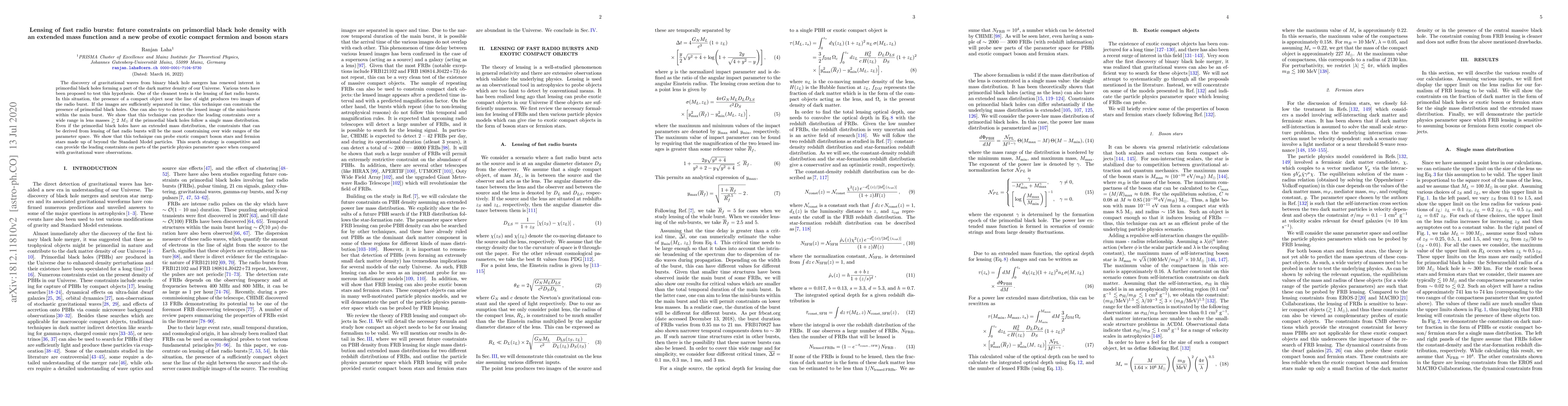 This paper explores the lensing of fast radio bursts as a method to constrain the density of primordial black holes and to probe exotic compact boson and fermion stars. The technique can yield leading constraints on primordial black hole masses and extended mass distributions, and also serve as a competitive probe for beyond Standard Model particles.