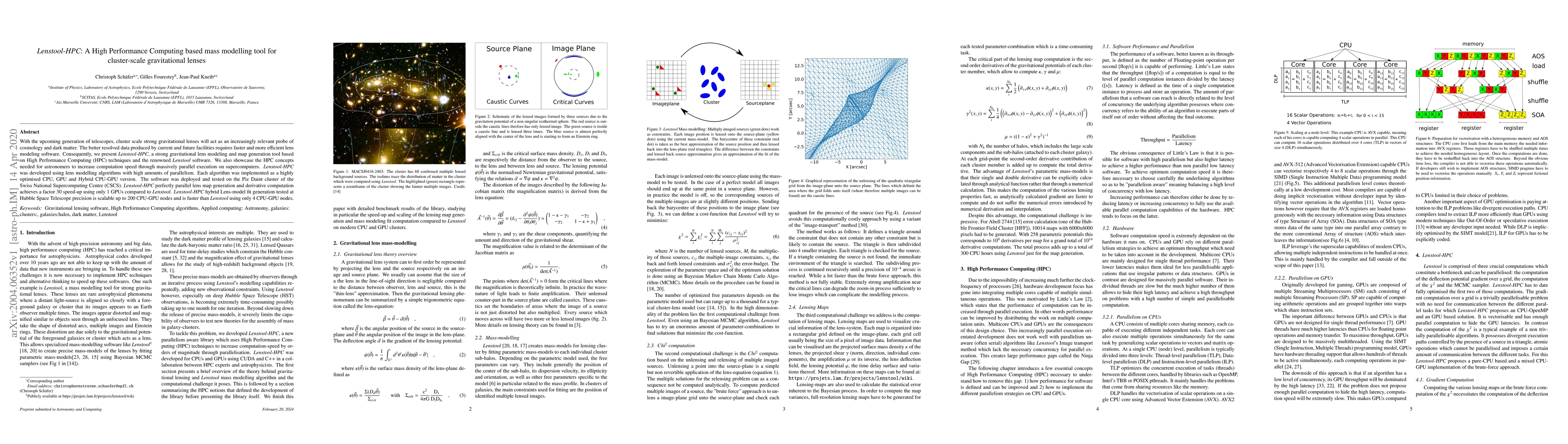 Lenstool-HPC is a high-performance computing tool for modeling cluster-scale gravitational lenses, achieving significant speed-ups using parallel execution on supercomputers. It offers optimized CPU, GPU, and hybrid CPU-GPU versions for lens map generation and model fitting, demonstrating a 30x speed-up with just 1 GPU compared to the original Lenstool software.