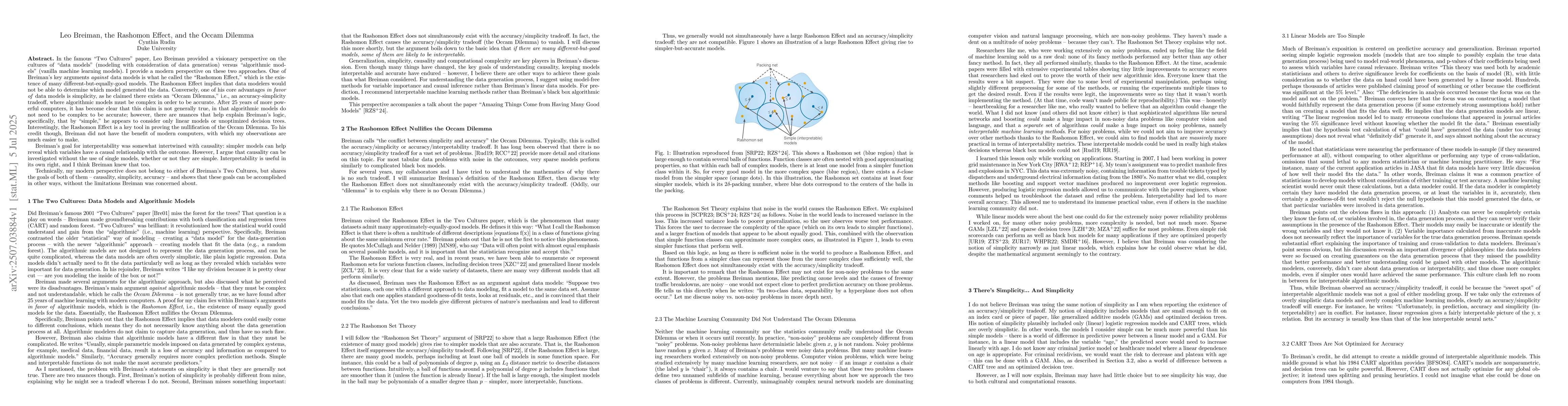 The work revisits Breiman's arguments, offering a contemporary perspective that emphasizes the advancements in computational power and machine learning techniques, challenging the previously held belief in the accuracy-simplicity tradeoff.