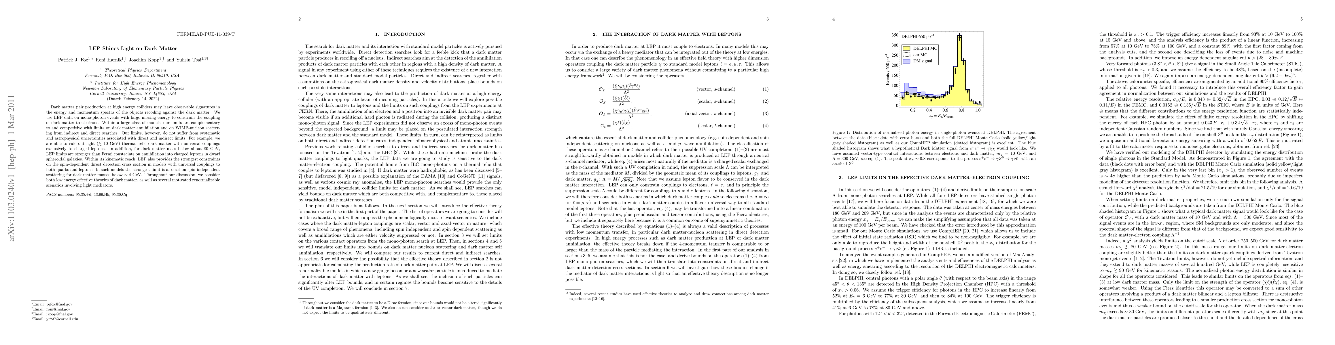 This paper uses LEP data to constrain dark matter coupling to electrons, finding limits competitive with indirect and direct searches. LEP's approach provides stronger constraints than Fermi for certain dark matter masses and scenarios, especially ruling out light thermal relic dark matter with universal lepton couplings.