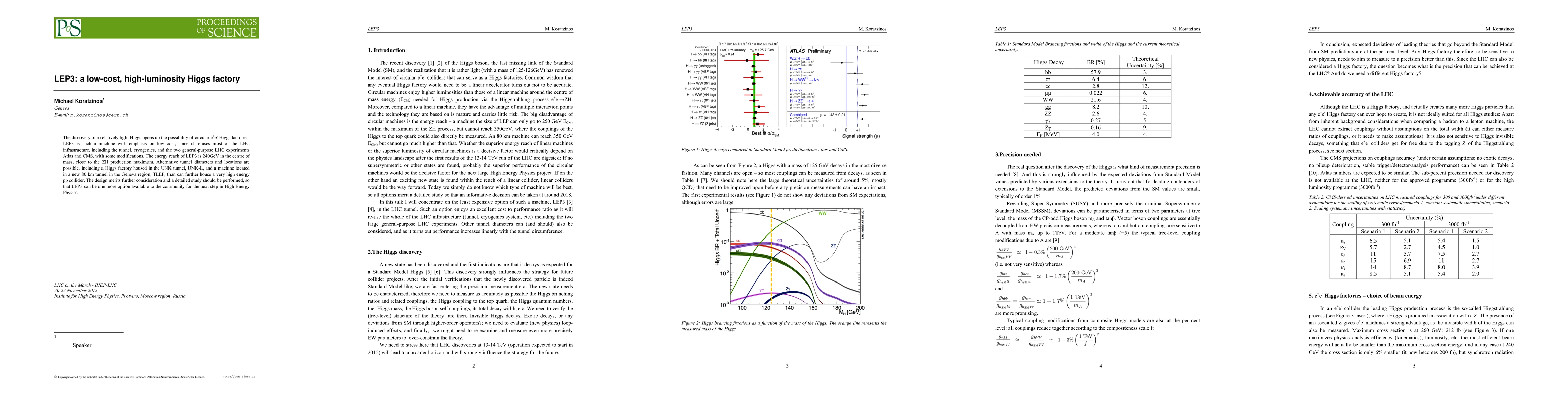 LEP3 is a proposed Higgs factory that uses re-purposed LHC infrastructure to create a low-cost, high-luminosity particle accelerator. It aims to produce 240 GeV center-of-mass energy, making it an attractive option for the next step in High Energy Physics research.