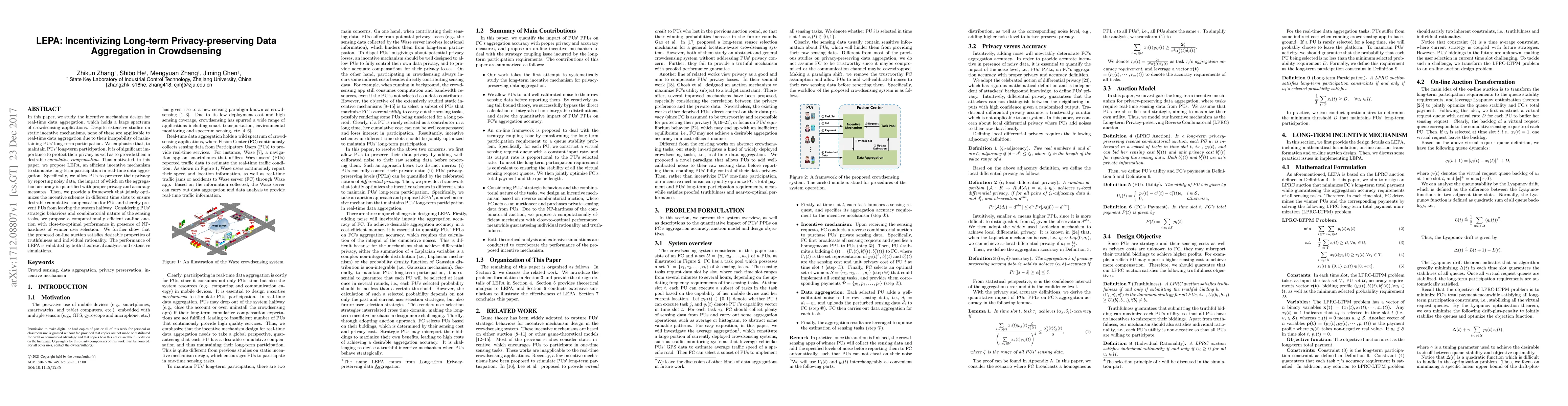 This paper proposes LEPA, an incentive mechanism to encourage long-term participation in real-time crowdsensing data aggregation while ensuring participants' privacy through noisy data reporting. The mechanism optimizes cumulative compensation and employs an efficient on-line auction to handle NP-hardness, ensuring truthfulness and individual rationality, validated by theoretical and simulation results.