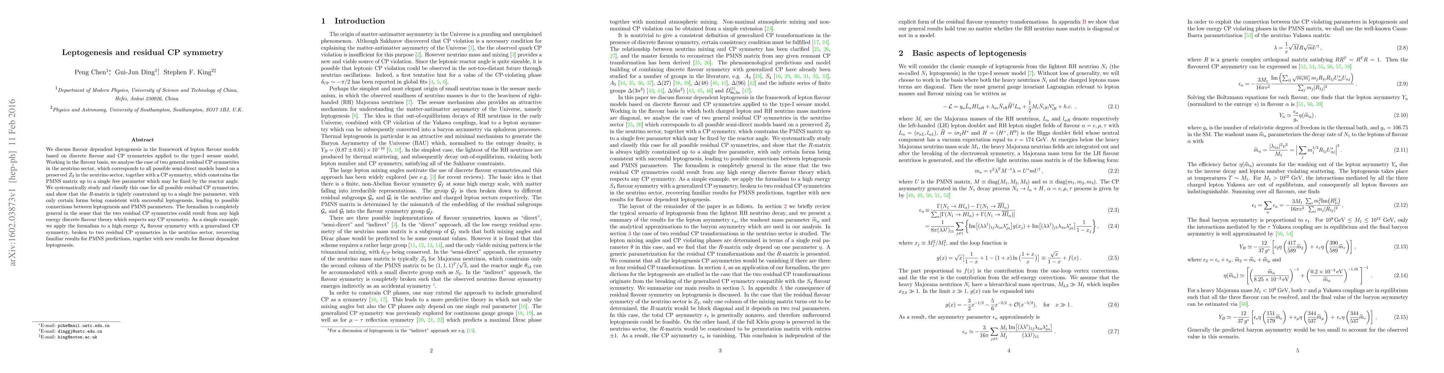 This paper explores flavour dependent leptogenesis within the type-I seesaw model, focusing on the implications of two general residual CP symmetries in the neutrino sector. It finds that these symmetries constrain the PMNS matrix and the $R$-matrix, leading to specific forms consistent with successful leptogenesis and potential links between leptogenesis and PMNS parameters.