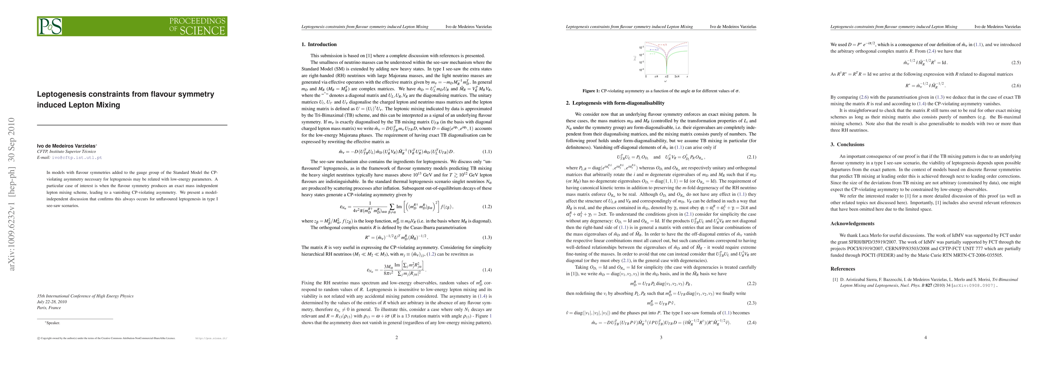 This paper explores how flavour symmetries in the Standard Model can influence leptogenesis, finding that an exact mass-independent lepton mixing scheme induced by such symmetries always results in a vanishing CP-violating asymmetry, thus constraining unflavoured leptogenesis in type I see-saw scenarios.