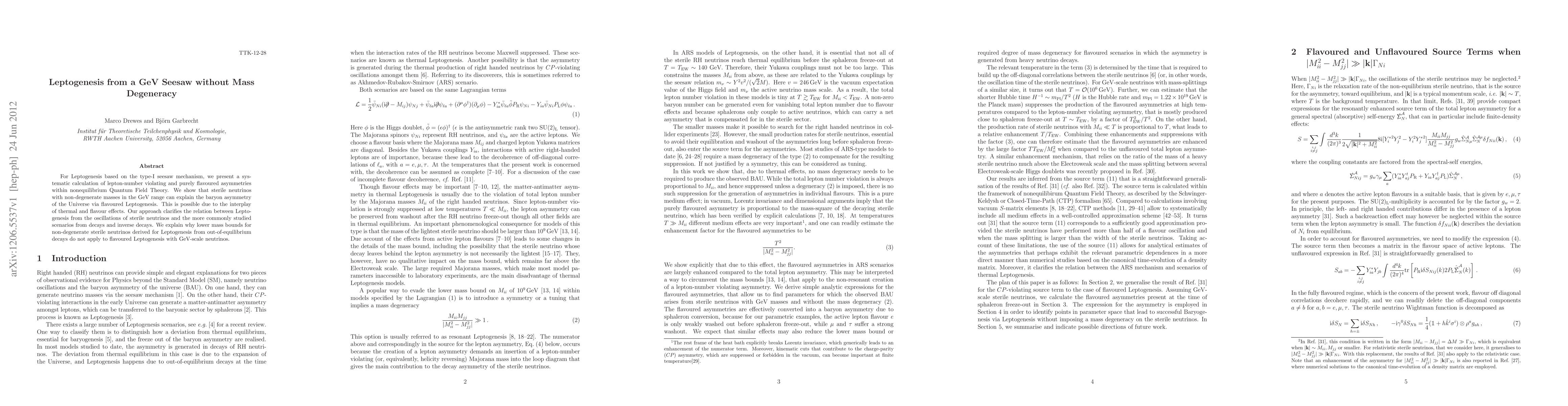 This paper investigates leptogenesis through the type-I seesaw mechanism using nonequilibrium Quantum Field Theory, demonstrating that GeV-scale sterile neutrinos with non-degenerate masses can generate the observed baryon asymmetry via flavoured leptogenesis, differing from traditional decay-based scenarios. It clarifies that lower mass bounds for sterile neutrinos derived from decay processes do not apply to this flavoured leptogenesis approach.