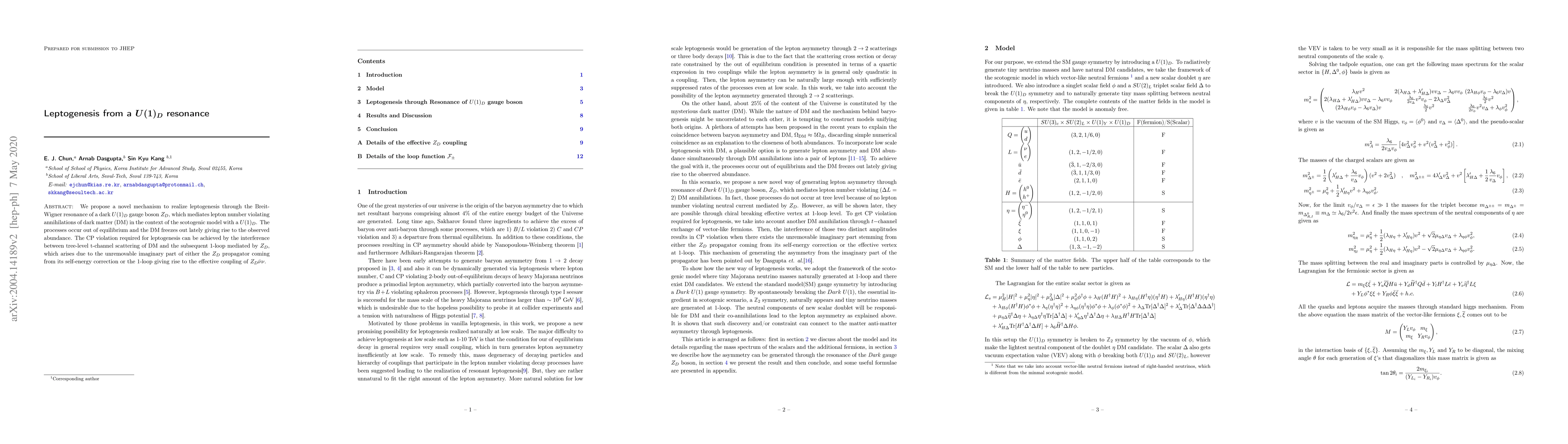 We propose a novel mechanism to realize leptogenesis through the Breit-Wigner resonance of a dark $U(1)_D$ gauge boson $Z_D$, which mediates lepton number violating annihilations of dark matter (DM) in the context of the scotogenic model with a $U(1)_D$. The processes occur out of equilibrium and the DM freezes out lately giving rise to the observed abundance. The CP violation required for leptogenesis can be achieved by the interference between tree-level t-channel scattering of DM and the subsequent 1-loop mediated by $Z_D$, which arises due to the unremovable imaginary part of either the $Z_D$ propagator coming from its self-energy correction or the 1-loop giving rise to the effective coupling of $Z_D\bar{\nu}\nu$.