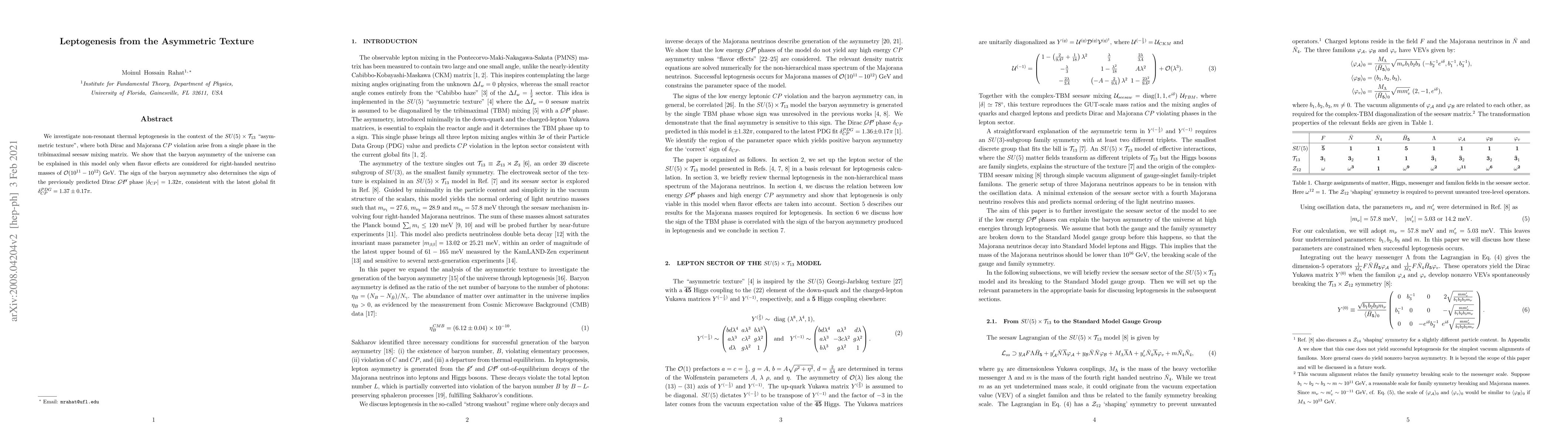 We investigate non-resonant thermal leptogenesis in the context of the $SU(5) \times \mathcal{T}_{13}$ "asymmetric texture", where both Dirac and Majorana ${CP}$ violation arise from a single phase in the tribimaximal seesaw mixing matrix. We show that the baryon asymmetry of the universe can be explained in this model only when flavor effects are considered for right-handed neutrino masses of $\mathcal{O}(10^9 - 10^{12})$ $\text{GeV}$. The sign of the baryon asymmetry also determines the sign of the previously predicted Dirac $\require{cancel}\cancel{CP}$ phase $|\delta_{CP}| = 1.32\pi$, consistent with the latest global fit $\delta_{CP}^{PDG} = 1.37 \pm 0.17\pi$.