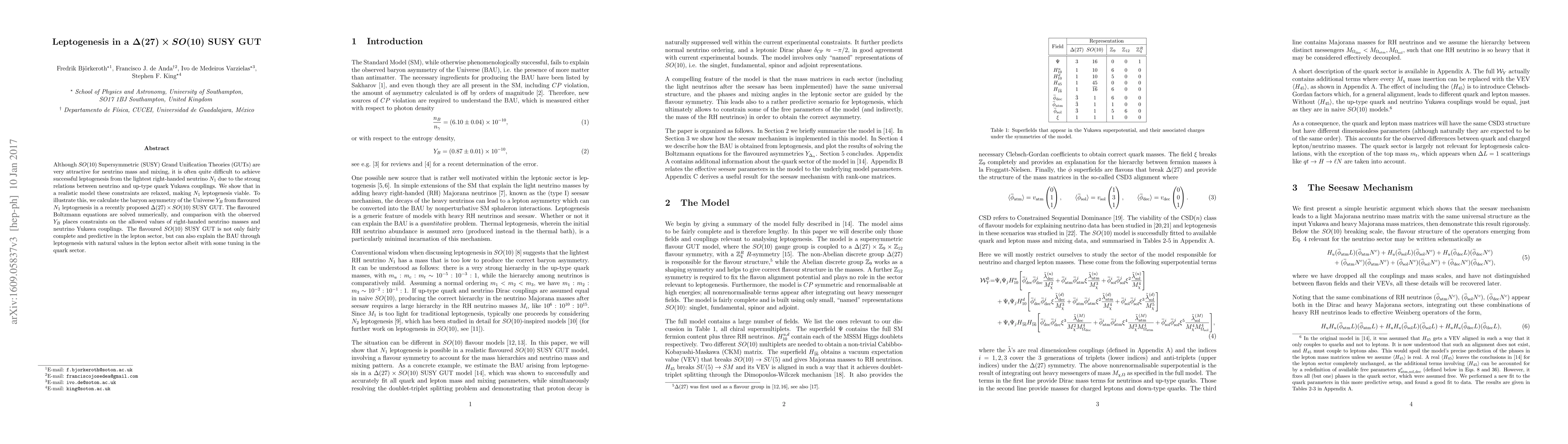 This paper demonstrates that leptogenesis in a $\Delta(27) \times SO(10)$ SUSY GUT can successfully generate the observed baryon asymmetry of the Universe through the decay of the lightest right-handed neutrino $N_1$, despite previous challenges due to strong coupling constraints. The study utilizes numerical solutions of flavoured Boltzmann equations to achieve this.