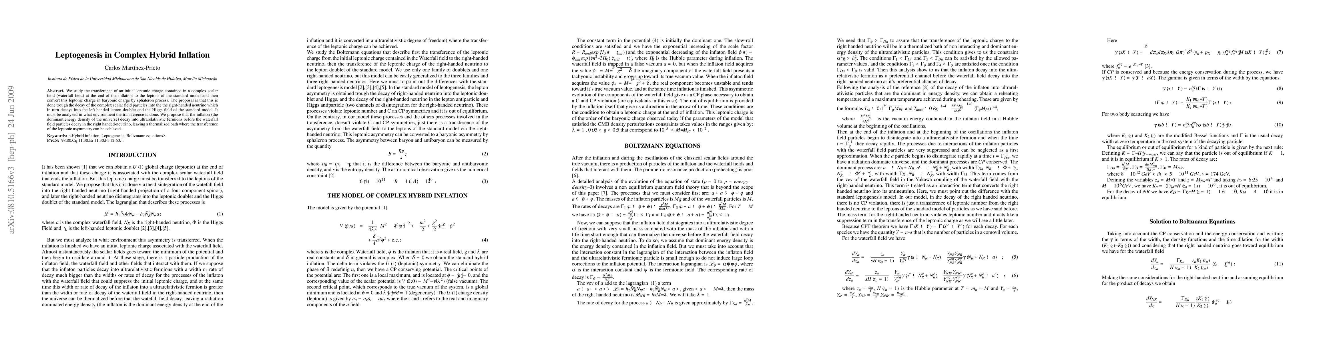 We study the transference of an initial leptonic charge contained in a complex scalar field (waterfall field) at the end of the inflation to the leptons of the standard model and then convert this leptonic charge in baryonic charge by sphaleron process. The proposal is that this is done trough the decay of the complex scalar field particles into the right-handed neutrino which in turn decays into the left-handed lepton doublet and the Higgs field of the standard model. It must be analyzed in what environment the transference is done. We propose that the inflaton (the dominant energy density of the universe) decay into ultrarelativistic fermions before the waterfall field particles decay in the right-handed neutrino, leaving a thermalized bath where the transference of the leptonic asymmetry can be achieved.