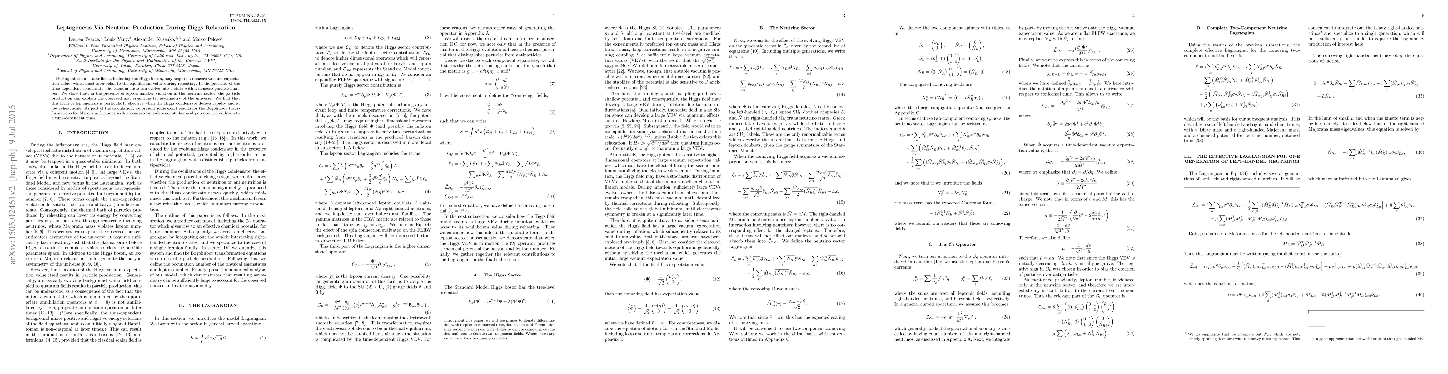 During inflation, scalar fields, including the Higgs boson, may acquire a nonzero vacuum expectation value, which must later relax to the equilibrium value during reheating. In the presence of the time-dependent condensate, the vacuum state can evolve into a state with a nonzero particle number. We show that, in the presence of lepton number violation in the neutrino sector, the particle production can explain the observed matter-antimatter asymmetry of the universe. We find that this form of leptogenesis is particularly effective when the Higgs condensate decays rapidly and at low reheat scale. As part of the calculation, we present some exact results for the Bogoliubov transformations for Majorana fermions with a nonzero time-dependent chemical potential, in addition to a time-dependent mass.