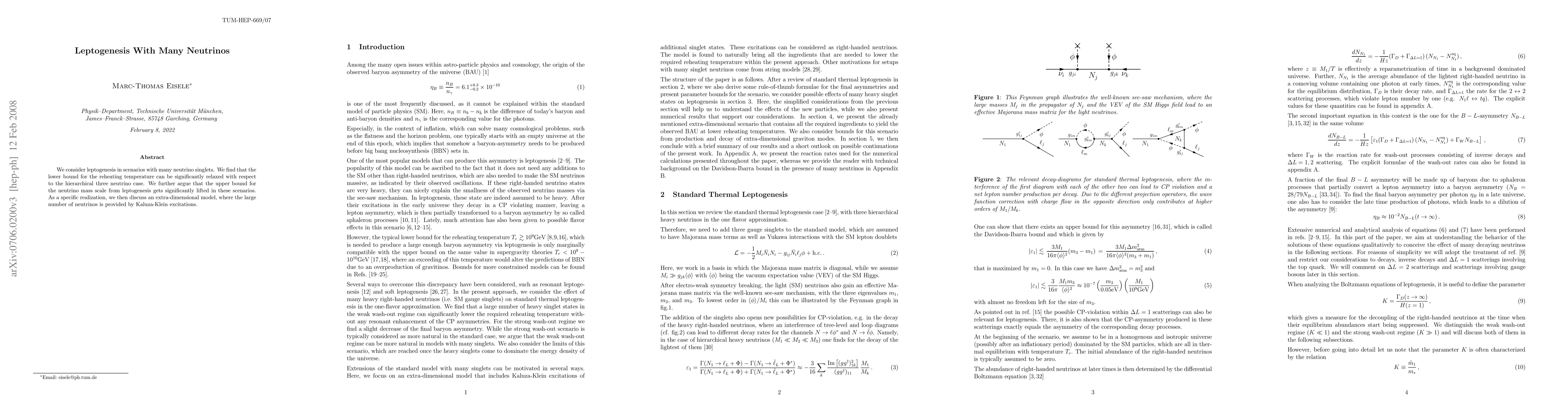 This paper explores leptogenesis in models with numerous neutrino singlets, showing that the reheating temperature can be lower and the upper bound on neutrino mass scales can be higher compared to the standard three-neutrino model. It also presents an extra-dimensional model where Kaluza-Klein excitations account for the large number of neutrinos.