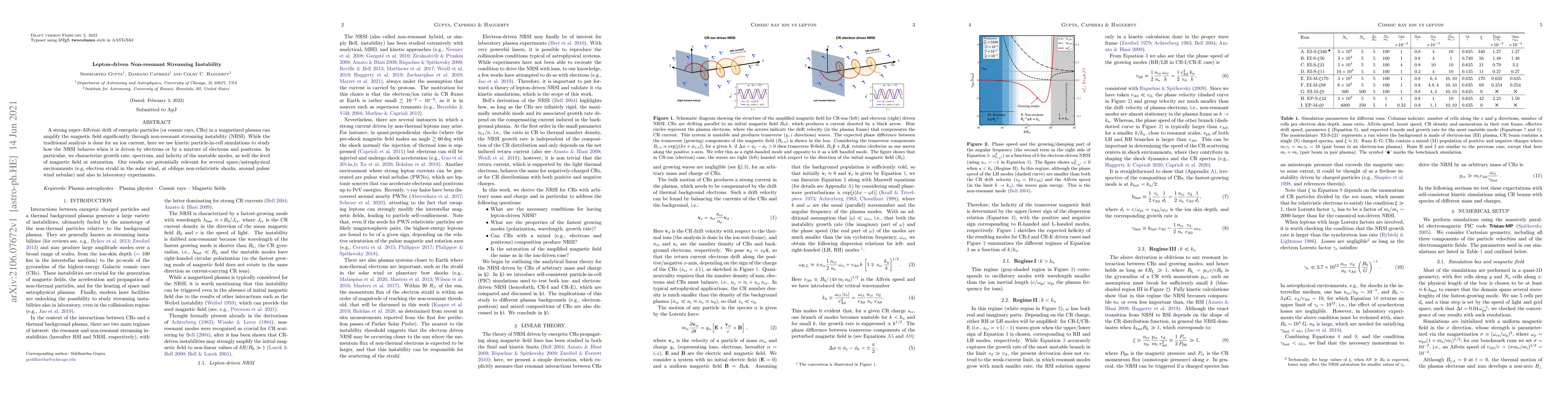 This paper investigates the non-resonant streaming instability (NRSI) driven by energetic electrons or a mixture of electrons and positrons in magnetized plasmas, using kinetic particle-in-cell simulations. The study characterizes the growth rate, spectrum, and helicity of unstable modes, and the magnetic field saturation level, with implications for astrophysical environments and laboratory experiments.