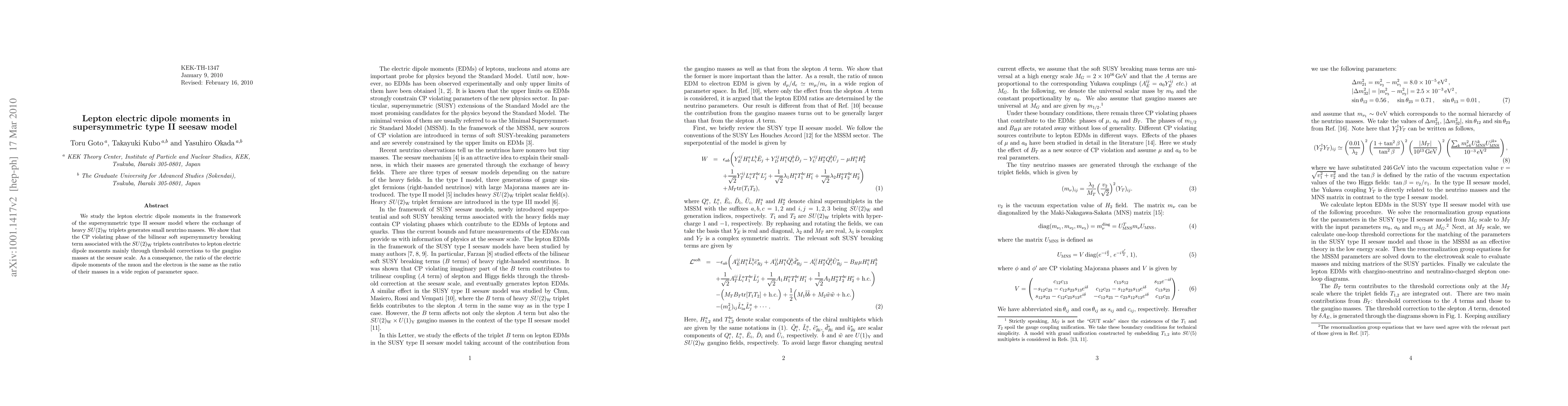 This paper investigates lepton electric dipole moments within the supersymmetric type II seesaw model, demonstrating that CP-violating phases in bilinear soft supersymmetry breaking terms influence these moments primarily via threshold corrections to gaugino masses at the seesaw scale. The study finds that the ratio of muon to electron electric dipole moments closely matches the ratio of their masses across a broad parameter space.