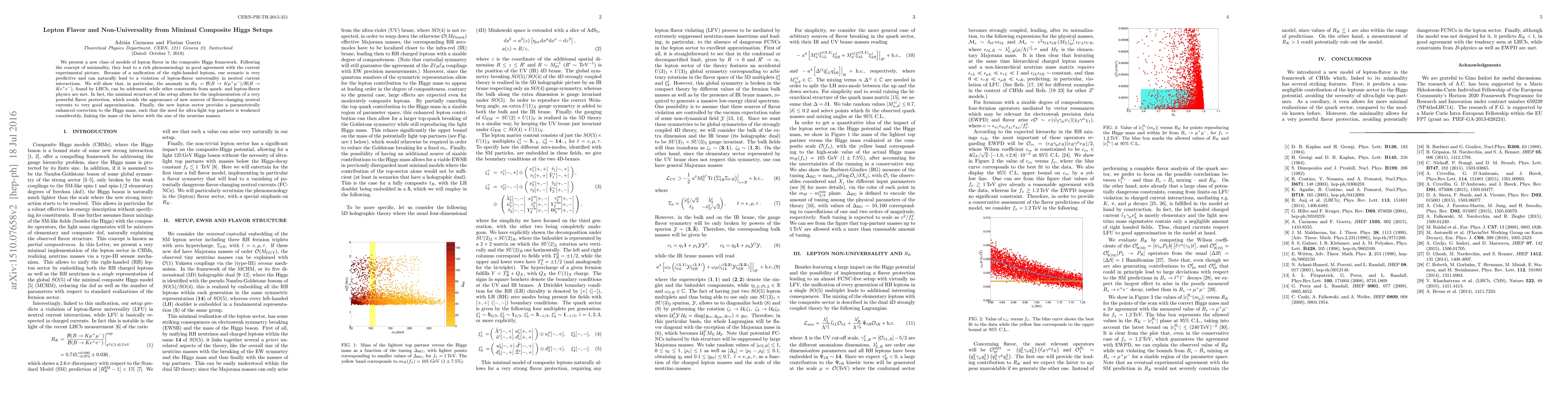We present a new class of models of lepton flavor in the composite Higgs framework. Following the concept of minimality, they lead to a rich phenomenology in good agreement with the current experimental picture. Because of a unification of the right-handed leptons, our scenario is very predictive and can naturally lead to a violation of lepton-flavor universality in neutral current interactions. We will show that, in particular, the anomaly in $R_K= {\cal B}(B \to K \mu^+ \mu^-)/{\cal B}(B \to K e^+ e^-)$, found by LHCb, can be addressed, while other constraints from quark- and lepton-flavor physics are met. In fact, the minimal structure of the setup allows for the implementation of a very powerful flavor protection, which avoids the appearance of new sources of flavor-changing neutral currents to very good approximation. Finally, the new lepton sector provides a parametrically enhanced correction to the Higgs mass, such that the need for ultra-light top partners is weakened considerably, linking the mass of the latter with the size of the neutrino masses.