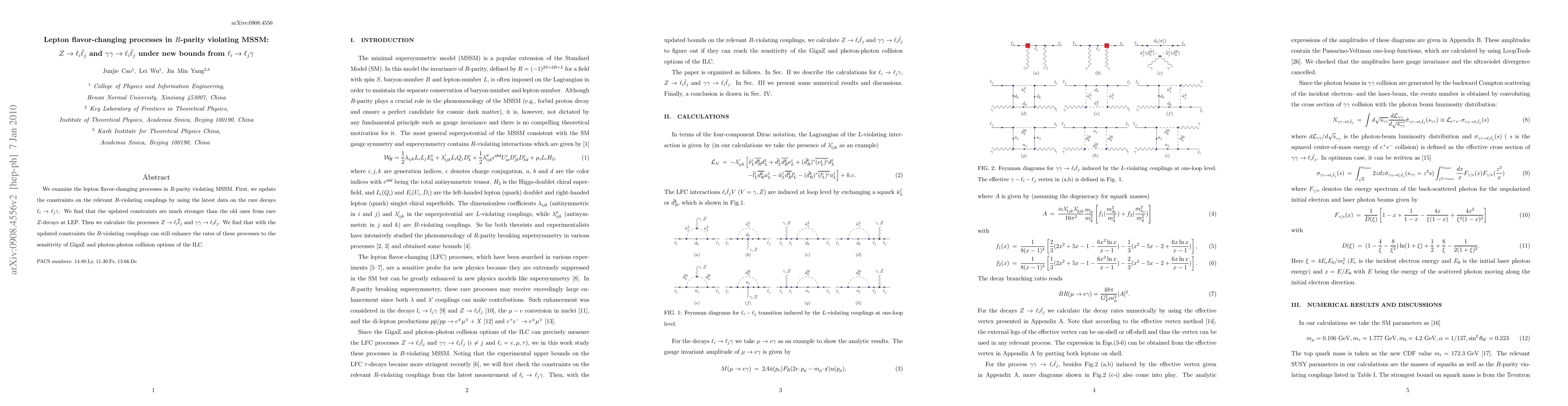 We examine the lepton flavor-changing processes in R-parity violating MSSM. First, we update the constraints on the relevant R-violating couplings by using the latest data on the rare decays l_i->l_j \gamma. We find that the updated constraints are much stronger than the old ones from rare Z-decays at LEP. Then we calculate the processes Z->l_i l_j and \gamma\gamma->l_i l_j. We find that with the updated constraints the R-violating couplings can still enhance the rates of these processes to the sensitivity of GigaZ and photon-photon collision options of the ILC.