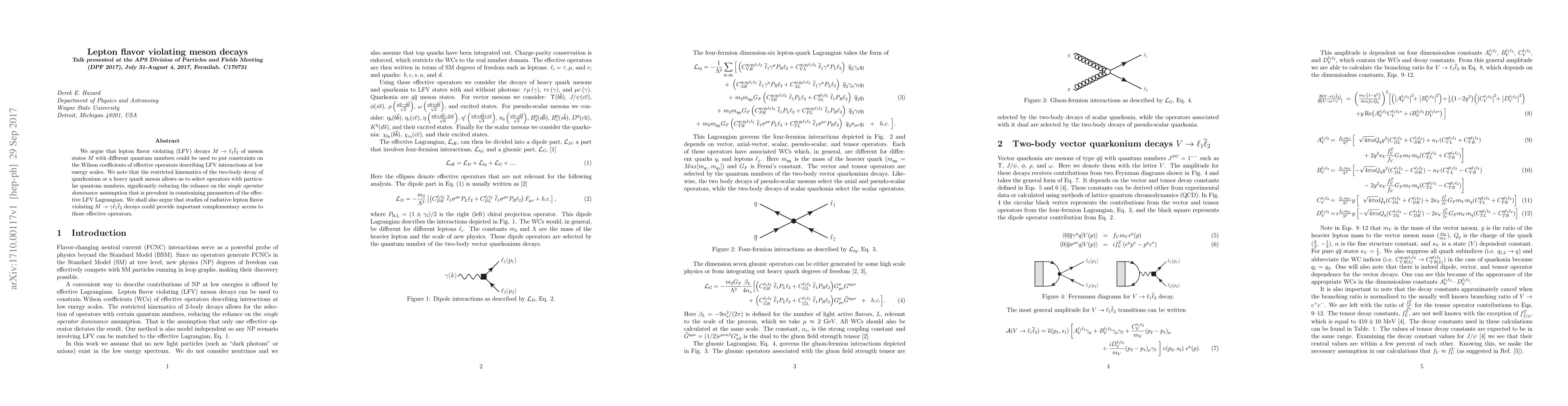 We argue that lepton flavor violating (LFV) decays $M \to \ell_1 \overline{\ell}_2$ of meson states $M$ with different quantum numbers could be used to put constraints on the Wilson coefficients of effective operators describing LFV interactions at low energy scales. We note that the restricted kinematics of the two-body decay of quarkonium or a heavy quark meson allows us to select operators with particular quantum numbers, significantly reducing the reliance on the $single \ operator \ dominance$ assumption that is prevalent in constraining parameters of the effective LFV Lagrangian. We shall also argue that studies of radiative lepton flavor violating $M \to \gamma \ell_1 \overline{\ell}_2$ decays could provide important complementary access to those effective operators.