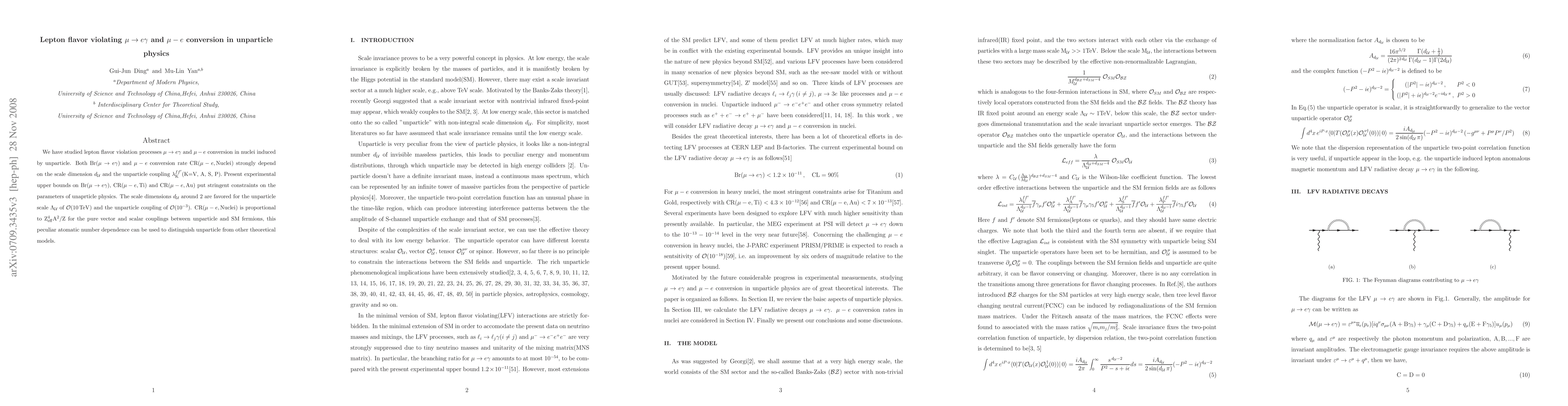 This paper investigates lepton flavor violation processes $\mu\to e\gamma$ and $\mu-e$ conversion in nuclei, attributing them to unparticle interactions. The study finds that both processes are strongly dependent on unparticle scale dimension $d_{\cal U}$ and coupling $\lambda^{ff'}_{\rm K}$, with experimental constraints favoring $d_{\cal U}$ around 2.
