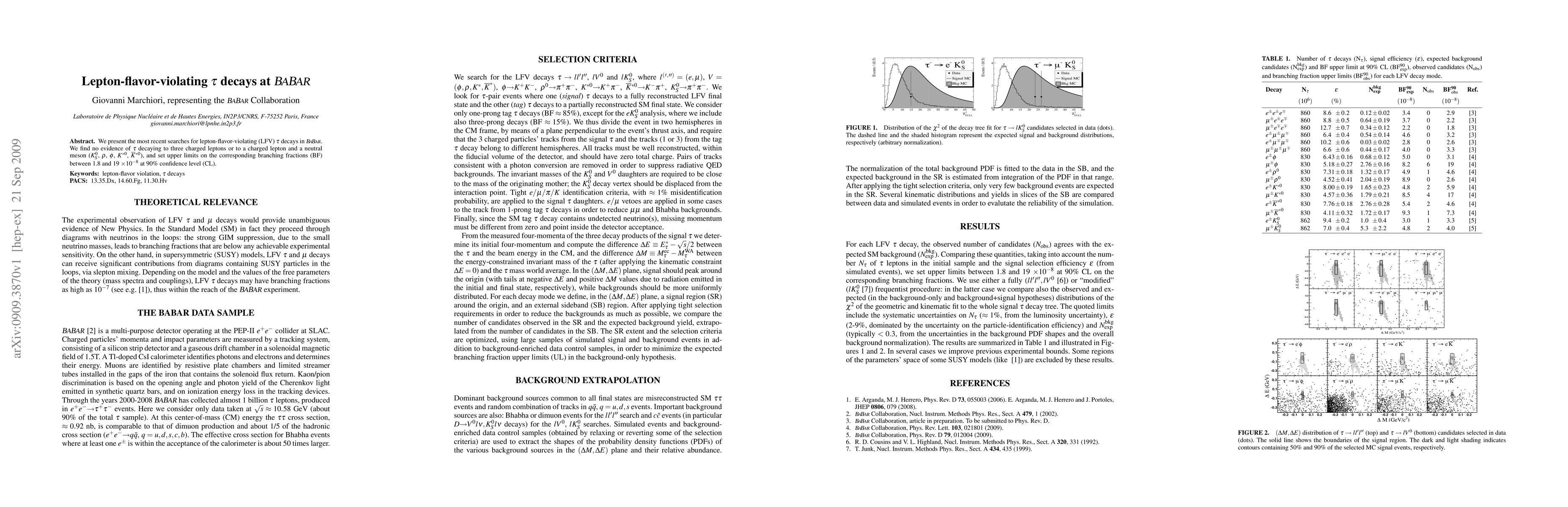 We present the most recent searches for lepton-flavor-violating tau decays in BaBar. We find no evidence of tau decaying to three charged leptons or to a charged lepton and a neutral meson (KS, rho, phi, K*0, anti-K*0), and set upper limits on the corresponding branching fractions between 1.8 and 19 times 10-8 at 90% confidence level.
