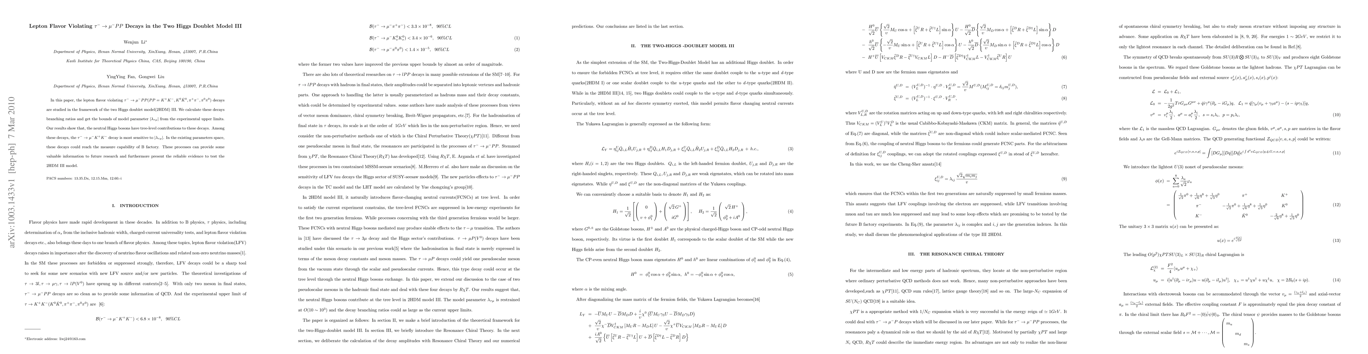 This paper investigates lepton flavor violating decays of $\tau^-$ to $\mu^-$ accompanied by pairs of mesons within the Two Higgs Doublet Model III, calculating branching ratios and parameter bounds. The $\tau^- \to \mu^- K^+K^-$ decay is most sensitive to the parameter $|\lambda_{\tau\mu}|$, potentially observable in future experiments.