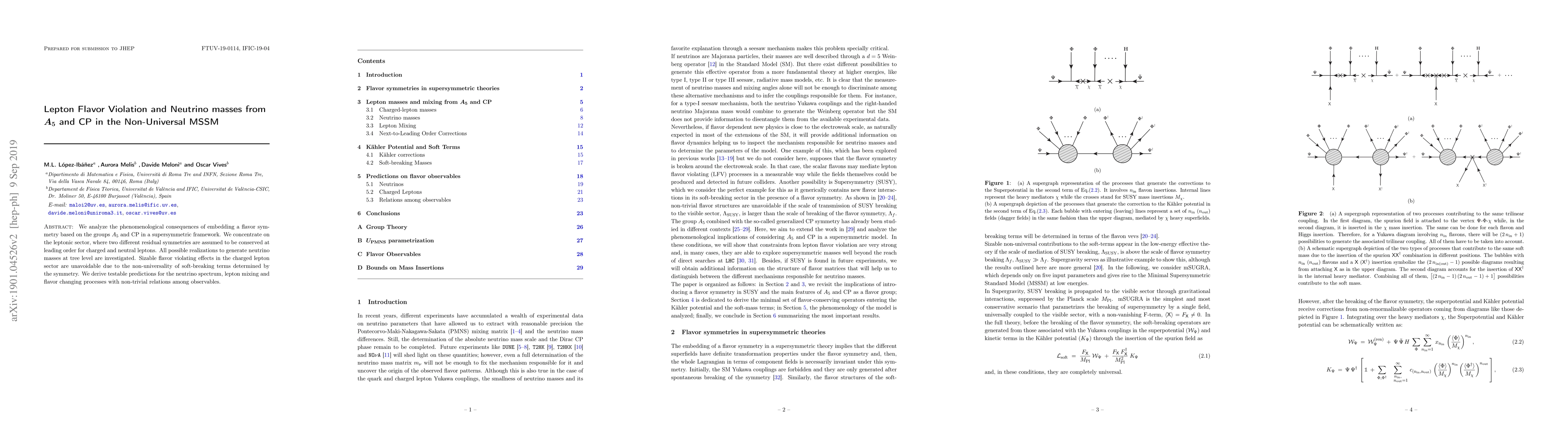 This paper explores the implications of embedding $A_5$ and CP symmetries in a non-universal MSSM framework, focusing on the leptonic sector. It investigates tree-level neutrino mass generation and predicts sizable lepton flavor violation in charged leptons due to non-universal soft-breaking terms, offering testable predictions for neutrino spectrum and mixing.