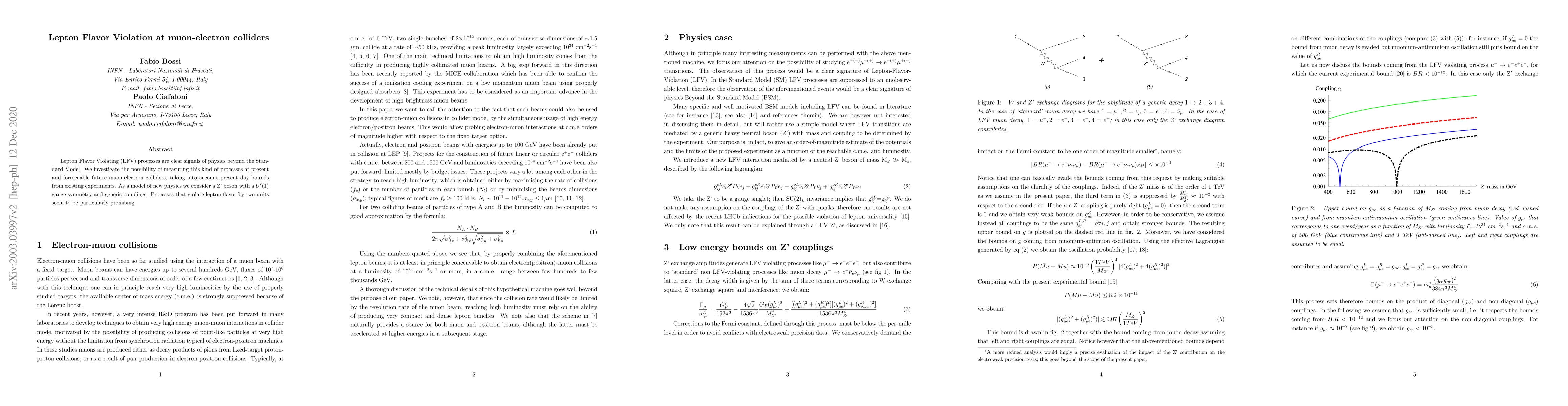 This paper explores the potential of muon-electron colliders to detect Lepton Flavor Violation (LFV) processes, which indicate physics beyond the Standard Model. It focuses on the feasibility of observing two-unit LFV processes, particularly in the context of a Z' boson with $U'(1)$ gauge symmetry, considering current experimental limits.