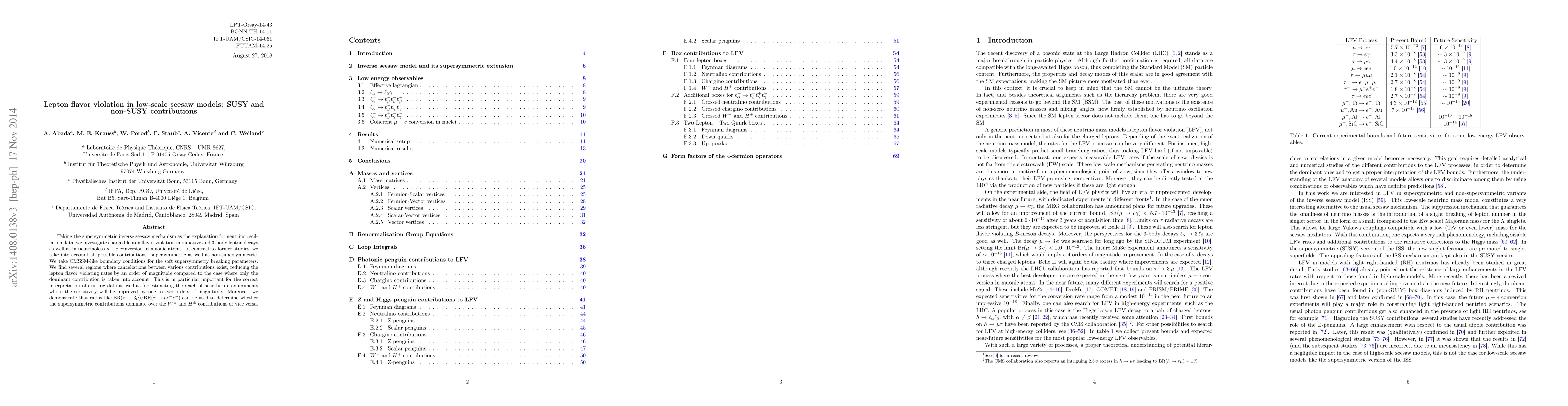 This paper investigates charged lepton flavor violation in low-scale seesaw models, including supersymmetric and non-supersymmetric contributions, and finds that cancellations between various contributions can reduce rates by an order of magnitude.