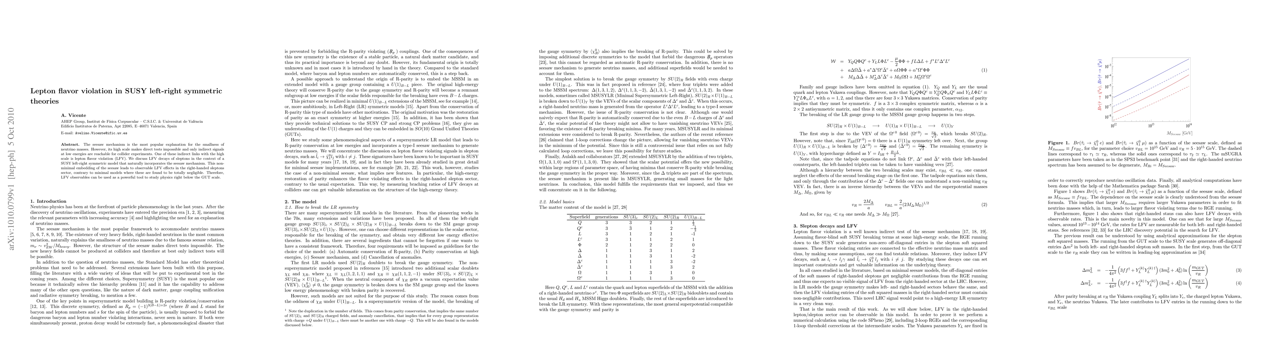 The seesaw mechanism is the most popular explanation for the smallness of neutrino masses. However, its high scale makes direct tests impossible and only indirect signals at low energies are reachable for collider experiments. One of these indirect links with the high scale is lepton flavor violation (LFV). We discuss LFV decays of sleptons in the context of a SUSY left-right symmetric model that naturally incorporates the seesaw mechanism. This non-minimal embedding of the seesaw leads to observable LFV effects in the right-handed sleptons sector, contrary to minimal models where these are found to be totally negligible. Therefore, LFV observables can be used as a powerful tool to study physics right below the GUT scale.