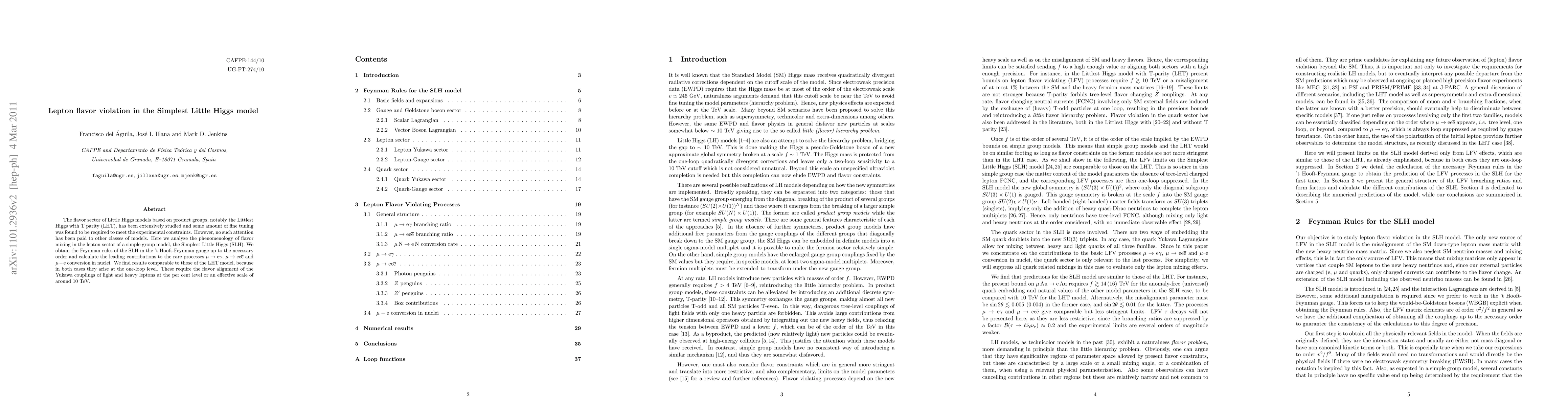This paper investigates lepton flavor violation in the Simplest Little Higgs (SLH) model, calculating contributions to rare processes like mu -> e gamma and mu-e conversion. The results show comparable phenomenology to the Littlest Higgs with T parity (LHT) model, both requiring fine-tuning at the one-loop level.