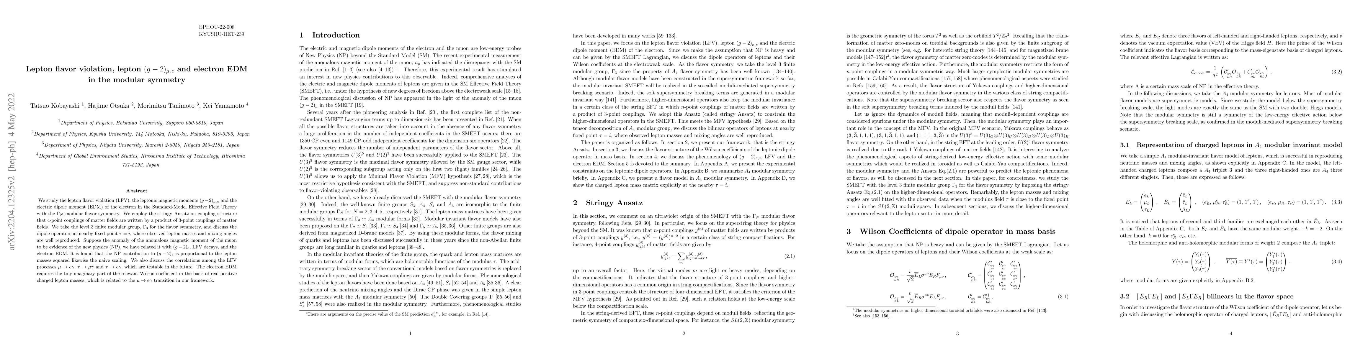 We study the lepton flavor violation (LFV), the leptonic magnetic moments $(g-2)_{\mu,\,e} $ and the electric dipole moment (EDM) of the electron in the Standard-Model Effective Field Theory with the $\Gamma_N$ modular flavor symmetry. We employ the stringy Ansatz on coupling structure that 4-point couplings of matter fields are written by a product of 3-point couplings of matter fields. We take the level 3 finite modular group, $\Gamma_3$ for the flavor symmetry, and discuss the dipole operators at nearby fixed point $\tau=i$, where observed lepton masses and mixing angles are well reproduced. Suppose the anomaly of the anomalous magnetic moment of the muon to be evidence of the new physics (NP), we have related it with $(g-2)_{e}$, LFV decays, and the electron EDM. It is found that the NP contribution to $(g-2)_{e}$ is proportional to the lepton masses squared likewise the naive scaling. We also discuss the correlations among the LFV processes $\mu\to e\gamma$, $\tau\to \mu\gamma$ and $\tau\to e\gamma$, which are testable in the future. The electron EDM requires the tiny imaginary part of the relevant Wilson coefficient in the basis of real positive charged lepton masses, which is related to the $\mu\to e\gamma$ transition in our framework.