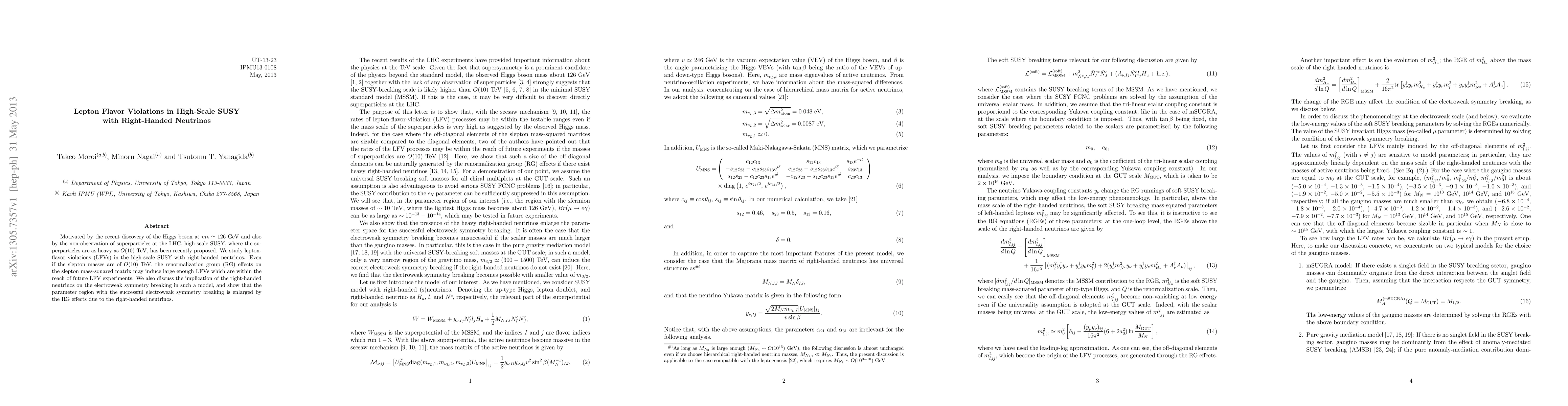 This paper investigates lepton flavor violations in high-scale SUSY models with right-handed neutrinos, demonstrating that despite heavy slepton masses, renormalization group effects can induce significant LFVs detectable by future experiments. It also shows that the presence of right-handed neutrinos expands the parameter space for successful electroweak symmetry breaking.