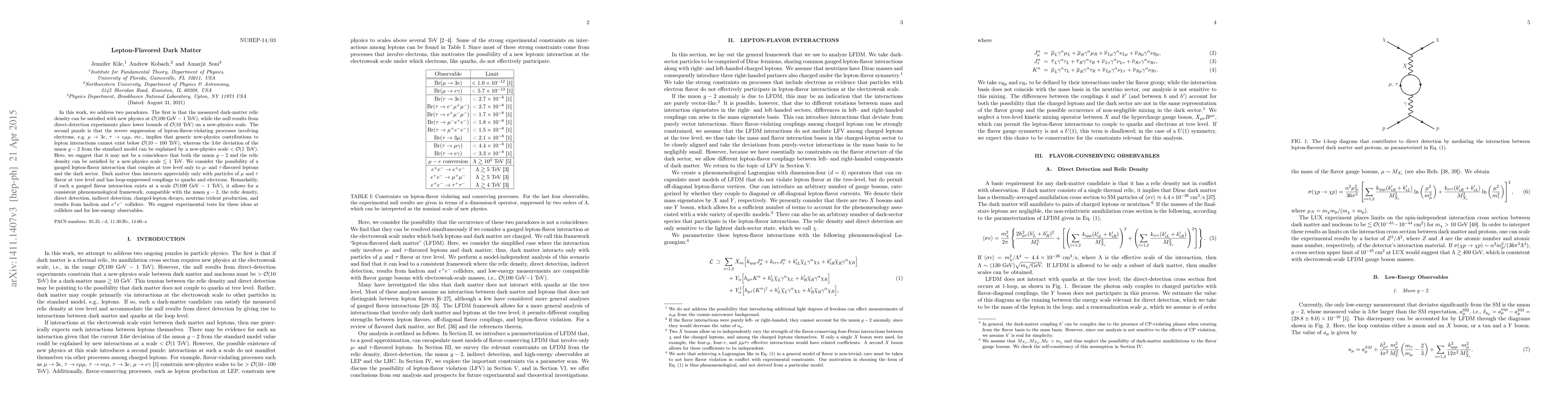 In this work, we address two paradoxes. The first is that the measured dark-matter relic density can be satisfied with new physics at O(100 GeV - 1 TeV), while the null results from direct-detection experiments place lower bounds of O(10 TeV) on a new-physics scale. The second puzzle is that the severe suppression of lepton-flavor-violating processes involving electrons, e.g. mu->3e, tau->e mu mu, etc., implies that generic new-physics contributions to lepton interactions cannot exist below O(10 - 100 TeV), whereas the 3.6sigma deviation of the muon g-2 from the standard model can be explained by a new-physics scale < O(1 TeV). Here, we suggest that it may not be a coincidence that both the muon g-2 and the relic density can be satisfied by a new-physics scale < 1 TeV. We consider the possibility of a gauged lepton-flavor interaction that couples at tree level only to mu- and tau-flavored leptons and the dark sector. Dark matter thus interacts appreciably only with particles of mu and tau flavor at tree level and has loop-suppressed couplings to quarks and electrons. Remarkably, if such a gauged flavor interaction exists at a scale O(100 GeV - 1 TeV), it allows for a consistent phenomenological framework, compatible with the muon g-2, the relic density, direct detection, indirect detection, charged-lepton decays, neutrino trident production, and results from hadron and e+e- colliders. We suggest experimental tests for these ideas at colliders and for low-energy observables.