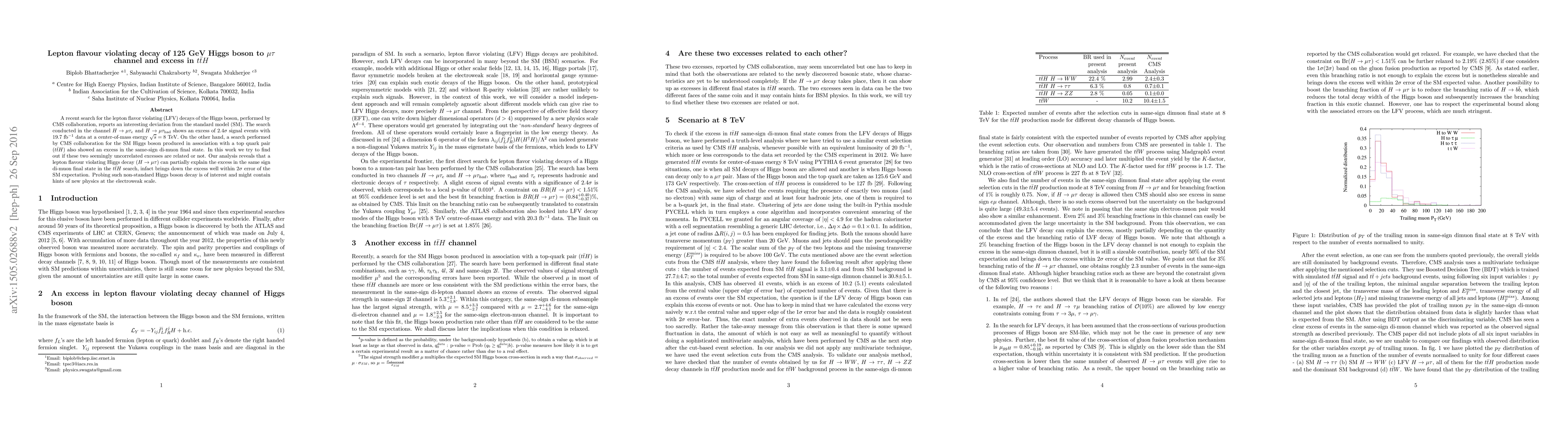 A recent search for the lepton flavor violating (LFV) decays of the Higgs boson, performed by CMS collaboration, reports an interesting deviation from the standard model (SM). The search conducted in the channel $H\rightarrow \mu\tau_e$ and $H\rightarrow \mu\tau_{\textrm{had}}$ shows an excess of $2.4\sigma$ signal events with 19.7 fb$^{-1}$ data at a center-of-mass energy $\sqrt s=8$ TeV. On the other hand, a search performed by CMS collaboration for the SM Higgs boson produced in association with a top quark pair ($t\bar t H$) also showed an excess in the same-sign di-muon final state. In this work we try to find out if these two seemingly uncorrelated excesses are related or not. Our analysis reveals that a lepton flavour violating Higgs decay ($H\rightarrow\mu\tau$) can partially explain the excess in the same sign di-muon final state in the $t\bar t H$ search, infact brings down the excess well within 2$\sigma$ error of the SM expectation. Probing such non-standard Higgs boson decay is of interest and might contain hints of new physics at the electroweak scale.