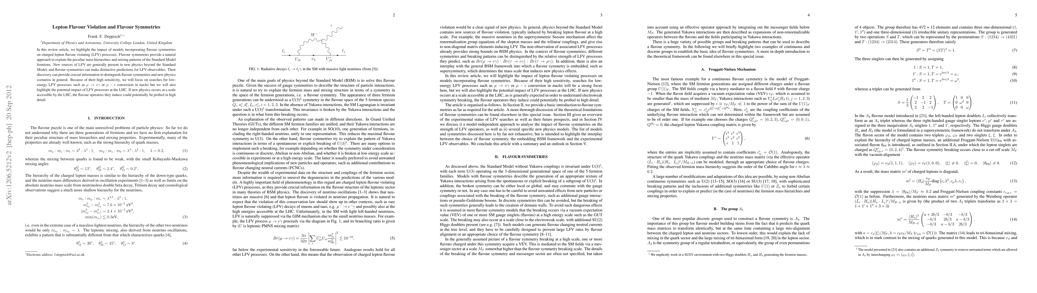This review article explores how models with flavour symmetries influence charged lepton flavour violating (LFV) processes, emphasizing the potential of these symmetries to explain the Standard Model's mass hierarchies and mixing patterns. It highlights the significance of low-energy LFV searches, such as mu --> e gamma, and discusses the implications of LFV processes at the LHC for probing new physics.
