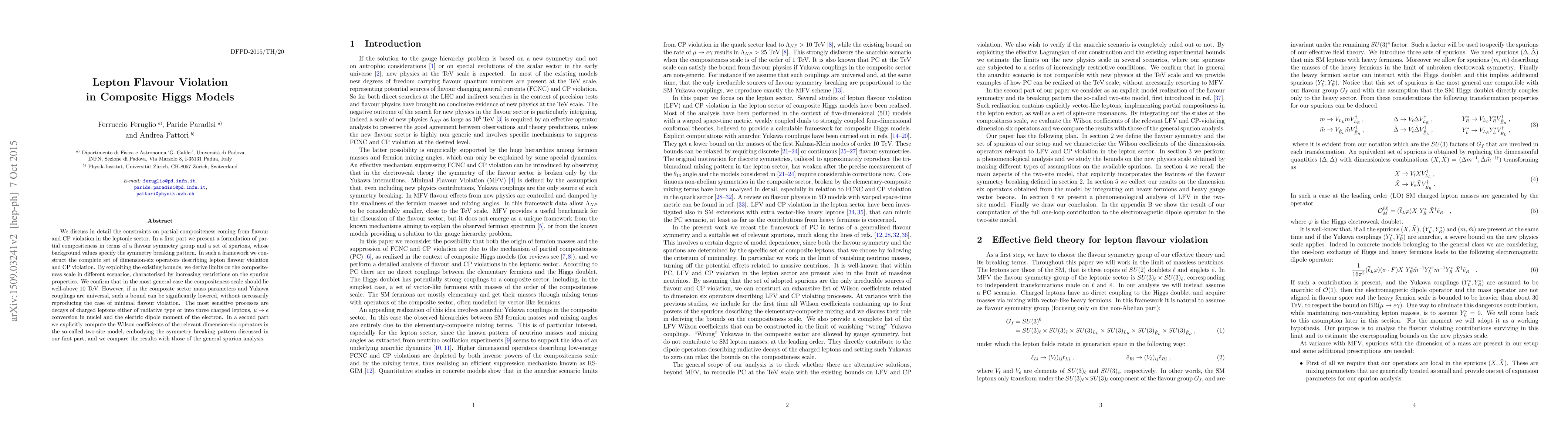 The paper presents a comprehensive formulation of partial compositeness using a flavour symmetry group and spurions, constructing all relevant dimension-six operators for LFV and CP violation, and deriving limits on the compositeness scale based on existing experimental bounds.