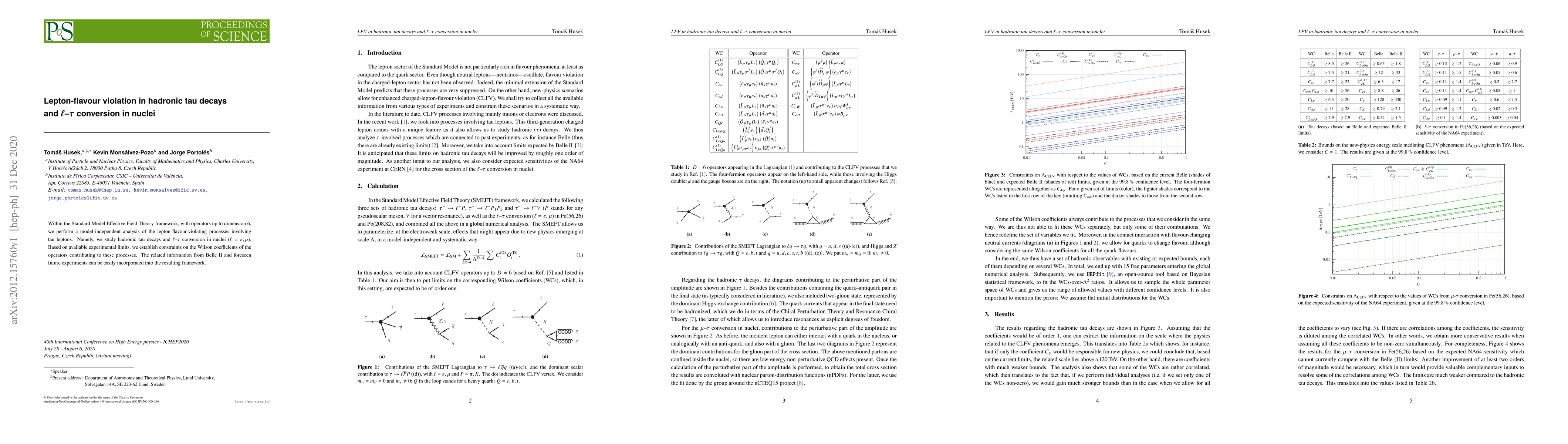 This paper conducts a model-independent analysis of lepton-flavour-violating processes in tau leptons, focusing on hadronic tau decays and $\ell$-$\tau$ conversion in nuclei. It establishes constraints on Wilson coefficients within the Standard Model Effective Field Theory framework, using available experimental limits.