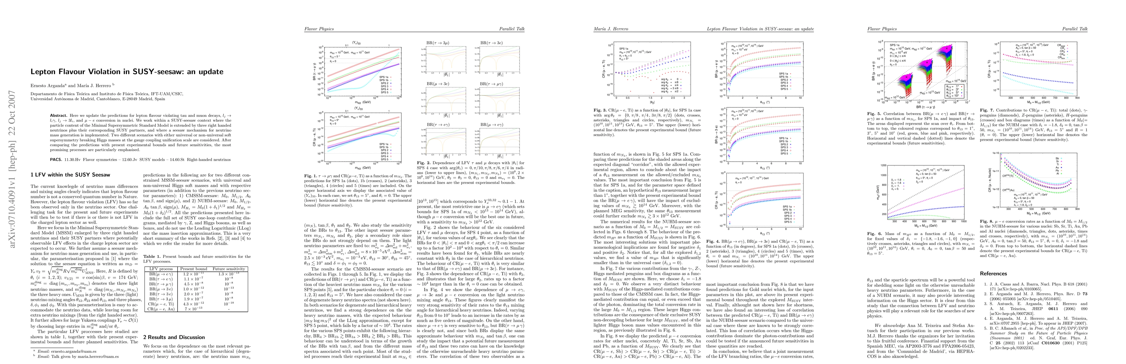 This paper updates predictions for lepton flavour violation in SUSY-seesaw models, focusing on decays $l_j \to l_i \gamma$ and $l_j \to 3 l_i$, and $\mu-e$ conversion in nuclei. It explores scenarios with universal and non-universal soft supersymmetry breaking Higgs masses, comparing results with current and future experimental sensitivities.