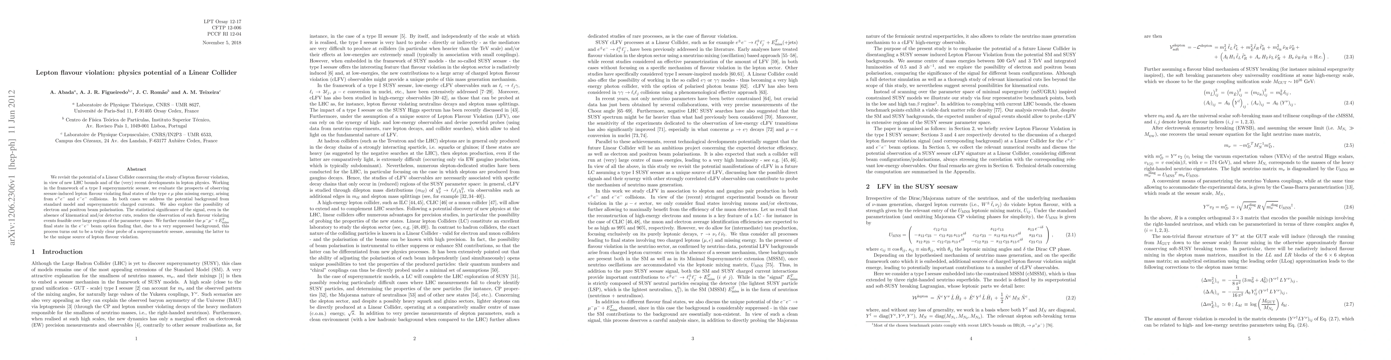 This paper explores the physics potential of a Linear Collider to observe lepton flavour violation (LFV) in the context of a type I supersymmetric seesaw model, considering recent LHC bounds and developments. The study finds that LFV events, such as e μ + missing energy, are feasible to detect even without cuts, making the collider a powerful tool for probing supersymmetric seesaw mechanisms.