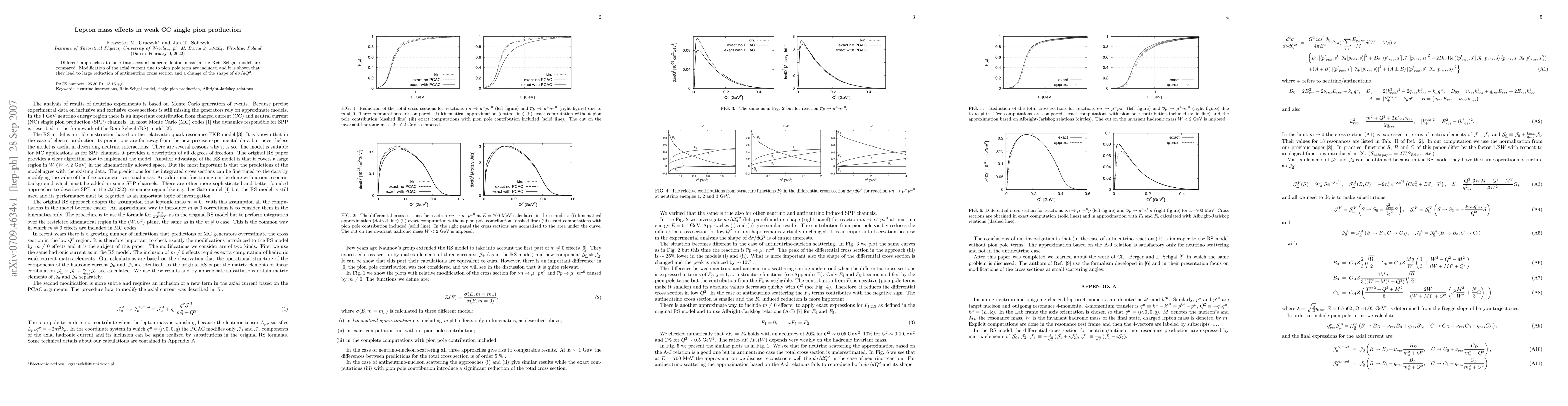 Different approaches to take into account nonzero lepton mass in the Rein-Sehgal model are compared. Modification of the axial current due to pion pole term are included and it is shown that they lead to large reduction of antineutrino cross section and a change of the shape of $d\sigma/dQ^2$.
