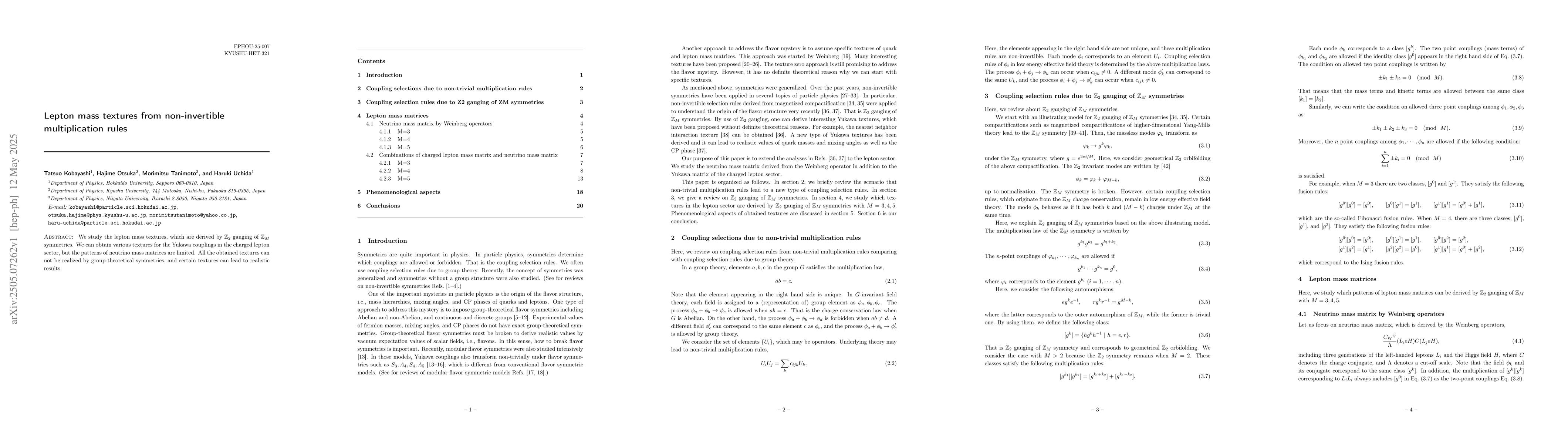 The paper presents a novel approach to deriving lepton mass textures using $\mathbb{Z}_2$ gauging of $\mathbb{Z}_M$ symmetries.