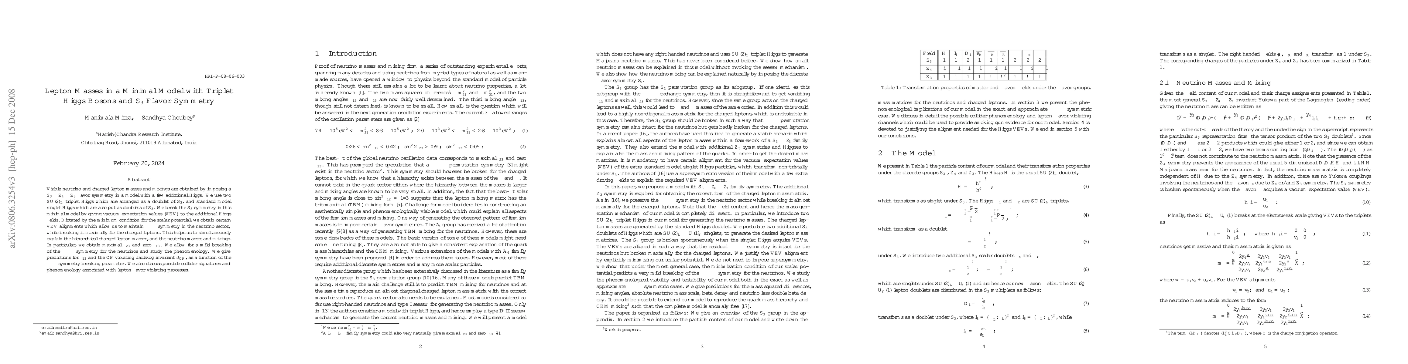 Viable neutrino and charged lepton masses and mixings are obtained by imposing a $S_3 \times Z_4 \times Z_3$ flavor symmetry in a model with a few additional Higgs. We use two $SU(2)_L$ triplet Higgs which are arranged as a doublet of $S_3$, and standard model singlet Higgs which are also put as doublets of $S_3$. We break the $S_3$ symmetry in this minimal model by giving vacuum expectation values (VEV) to the additional Higgs fields. Dictated by the minimum condition for the scalar potential, we obtain certain VEV alignments which allow us to maintain $\mu-\tau$ symmetry in the neutrino sector, while breaking it maximally for the charged leptons. This helps us to simultaneously explain the hierarchical charged lepton masses, and the neutrino masses and mixings. In particular, we obtain maximal $\theta_{23}$ and zero $\theta_{13}$. We allow for a mild breaking of the $\mu-\tau$ symmetry for the neutrinos and study the phenomenology. We give predictions for $\theta_{13}$ and the CP violating Jarlskog invariant $J_{CP}$, as a function of the $\mu-\tau$ symmetry breaking parameter. We also discuss possible collider signatures and phenomenology associated with lepton flavor violating processes.