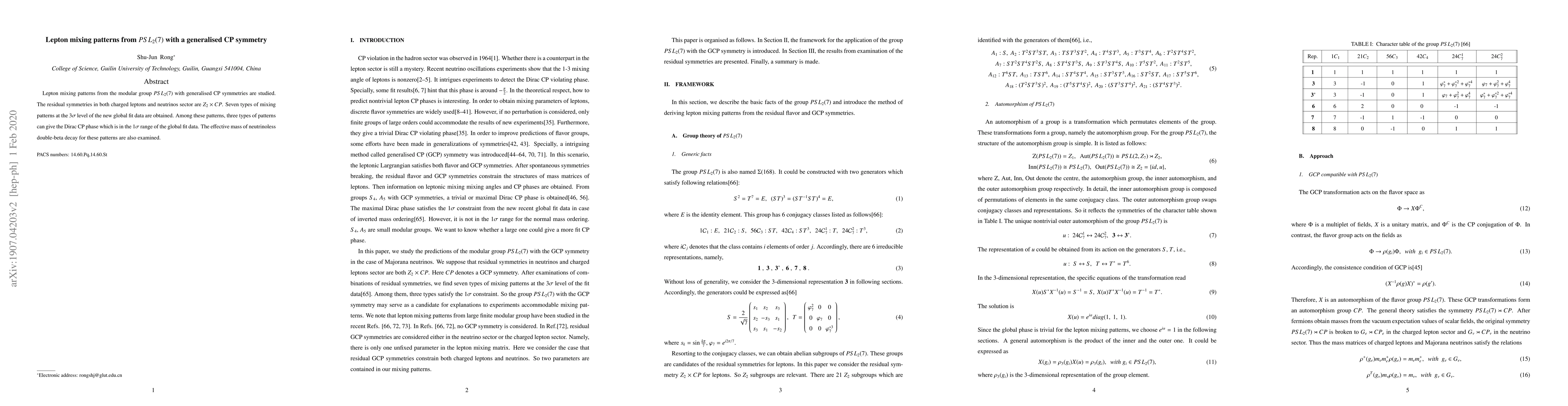 This paper explores lepton mixing patterns derived from the $PSL_2(7)$ modular group under generalised CP symmetries, identifying seven types at the $3\sigma$ confidence level. Three of these patterns align with the $1\sigma$ range of the Dirac CP phase from global fit data, while also examining the effective mass of neutrinoless double-beta decay.