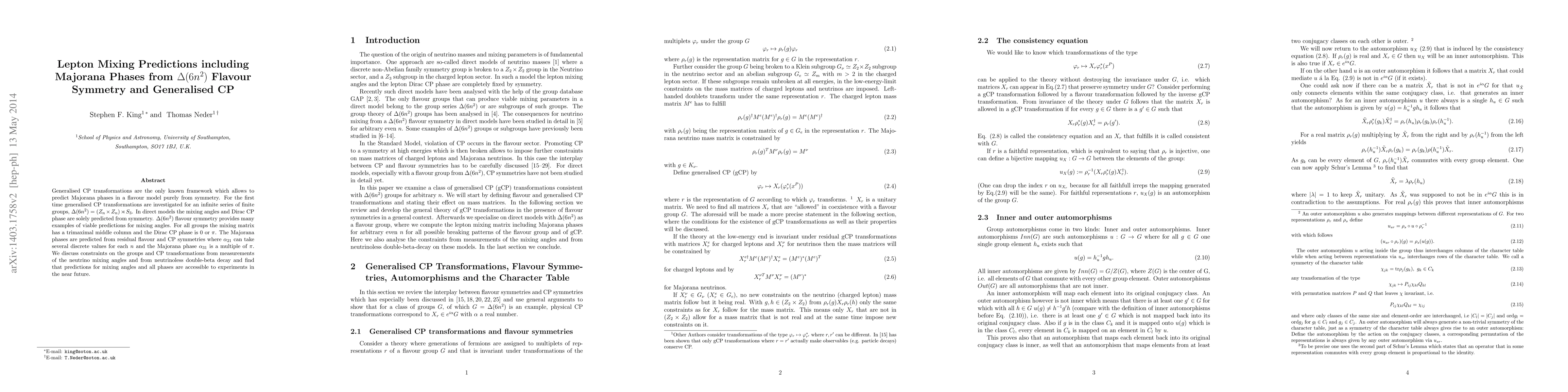 This paper investigates the $\Delta(6n^2)$ flavour symmetry within the framework of generalised CP transformations to predict lepton mixing angles and phases, finding a trimaximal mixing matrix and discrete values for Majorana phases. Predictions are experimentally accessible.