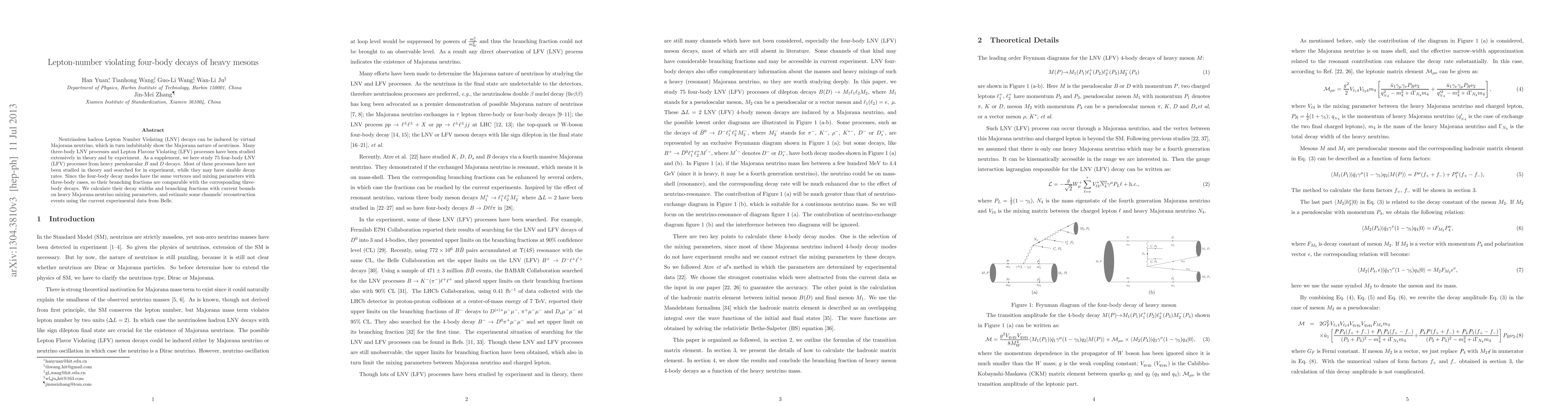 This paper investigates 75 four-body lepton-number violating decays of heavy pseudoscalar mesons ($B$ and $D$), which have not been studied extensively. The authors calculate decay widths and branching fractions, suggesting these processes may have sizable rates comparable to three-body decays, and estimate potential reconstruction events using current experimental data from Belle.