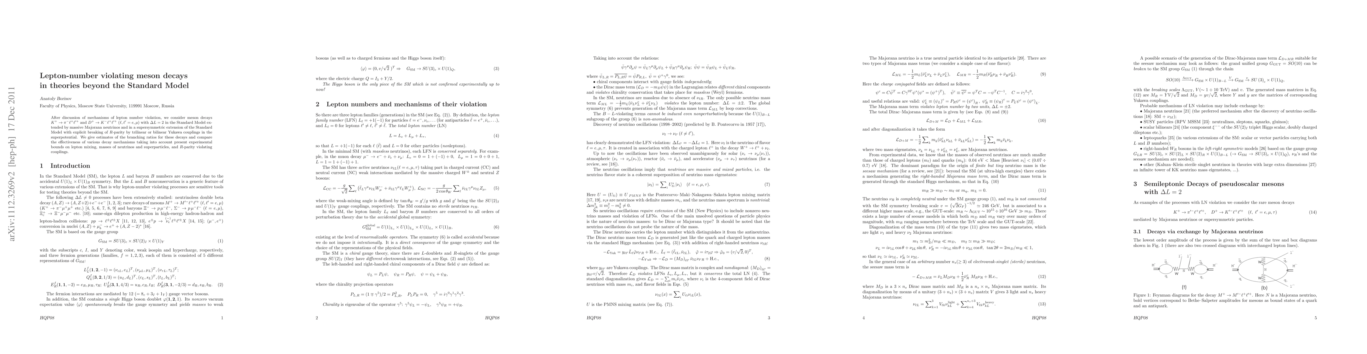 Researchers explored lepton-number violating meson decays in theories beyond the Standard Model, estimating branching ratios and comparing decay mechanisms with constraints from experimental bounds and particle masses.
