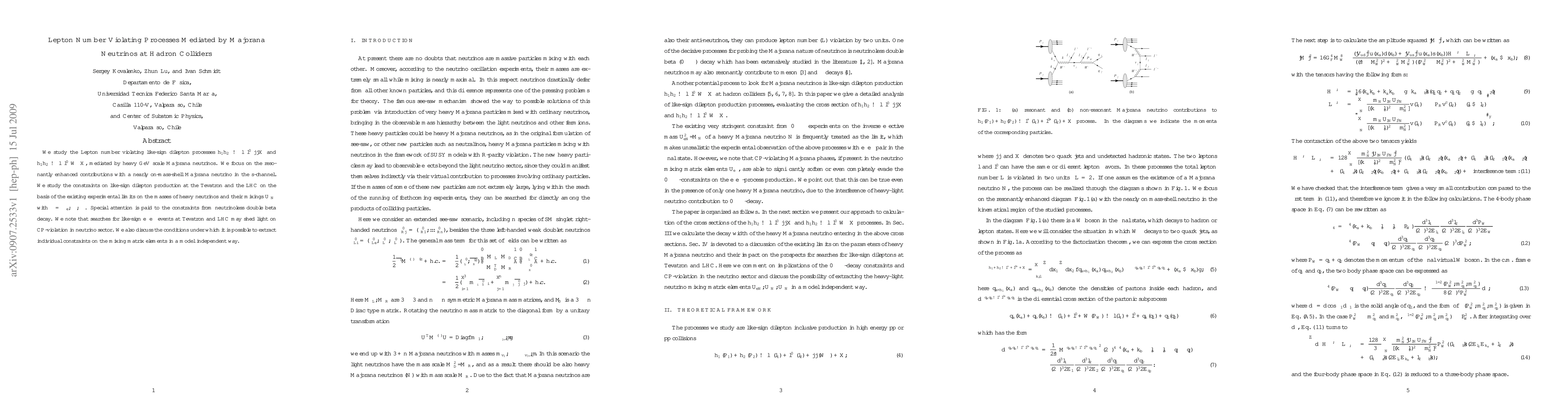 This paper investigates lepton number violating processes at hadron colliders, mediated by heavy Majorana neutrinos, focusing on like-sign dilepton events. It examines constraints from existing experimental limits and discusses the potential for probing CP-violation in the neutrino sector through these processes.