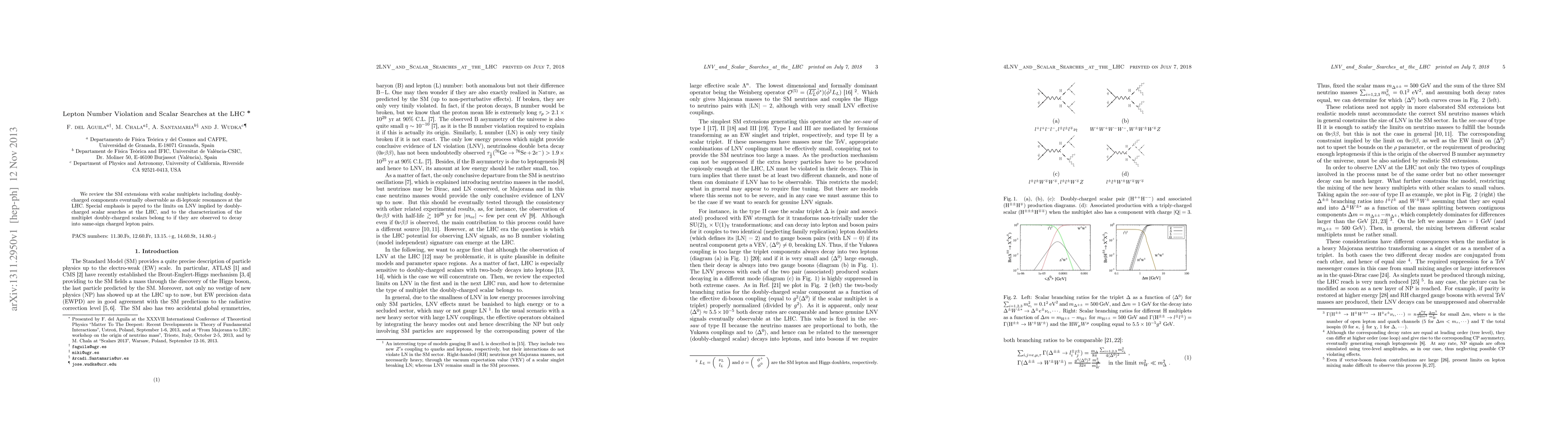 We review the SM extensions with scalar multiplets including doubly-charged components eventually observable as di-leptonic resonances at the LHC. Special emphasis is payed to the limits on LNV implied by doubly-charged scalar searches at the LHC, and to the characterization of the multiplet doubly-charged scalars belong to if they are observed to decay into same-sign charged lepton pairs.