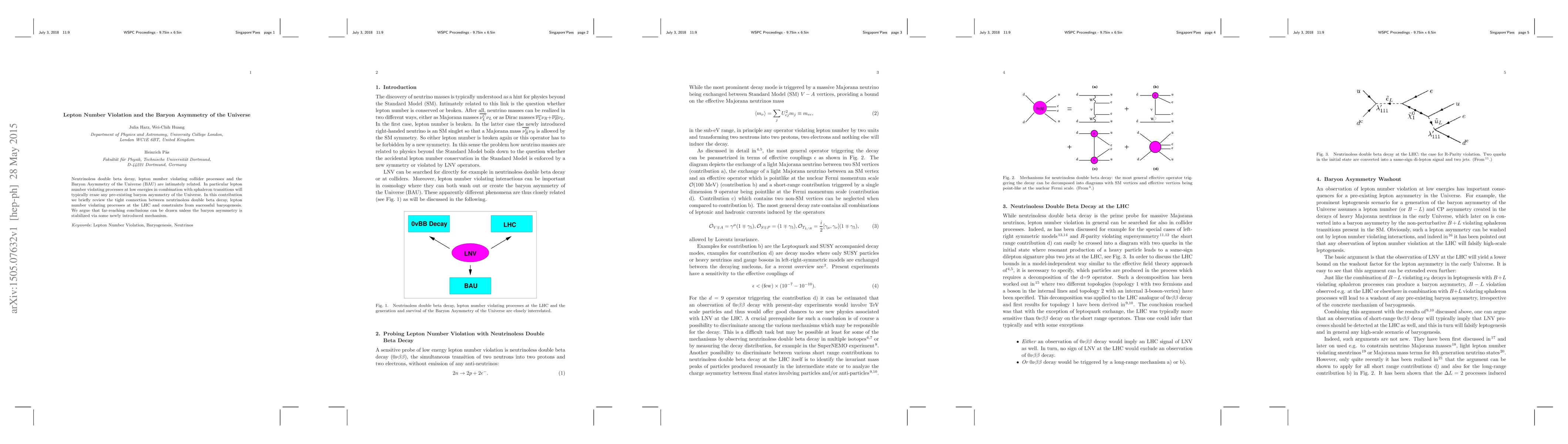 This paper reviews the relationship between lepton number violation, neutrinoless double beta decay, and the Baryon Asymmetry of the Universe, emphasizing that lepton number violating processes at low energies can erase pre-existing baryon asymmetries unless stabilized by new mechanisms. It highlights the implications for collider processes and successful baryogenesis.