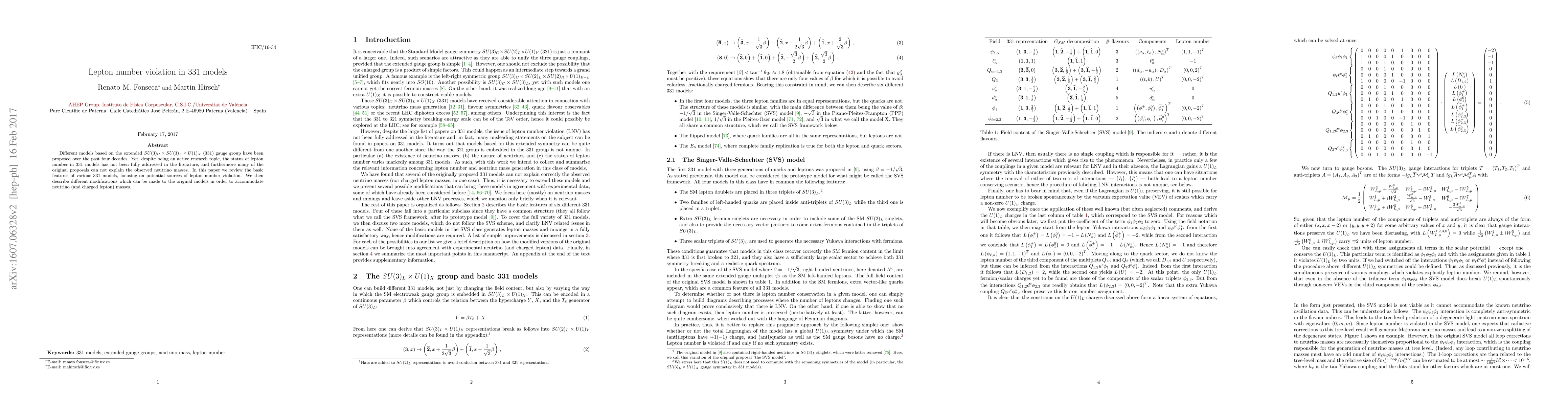 This paper reviews various 331 gauge group models, highlighting potential lepton number violation sources and proposing modifications to these models to better explain observed neutrino and charged lepton masses. The focus is on addressing the incomplete status of lepton number violation in existing literature.
